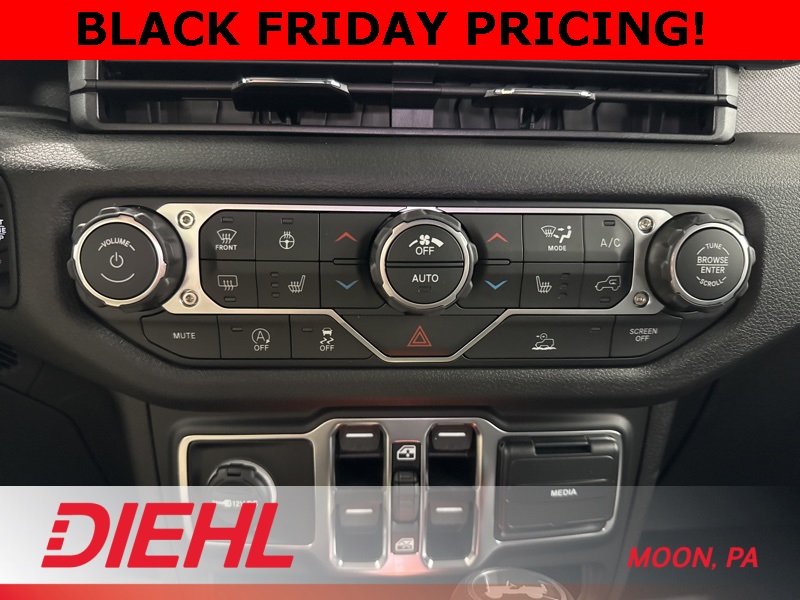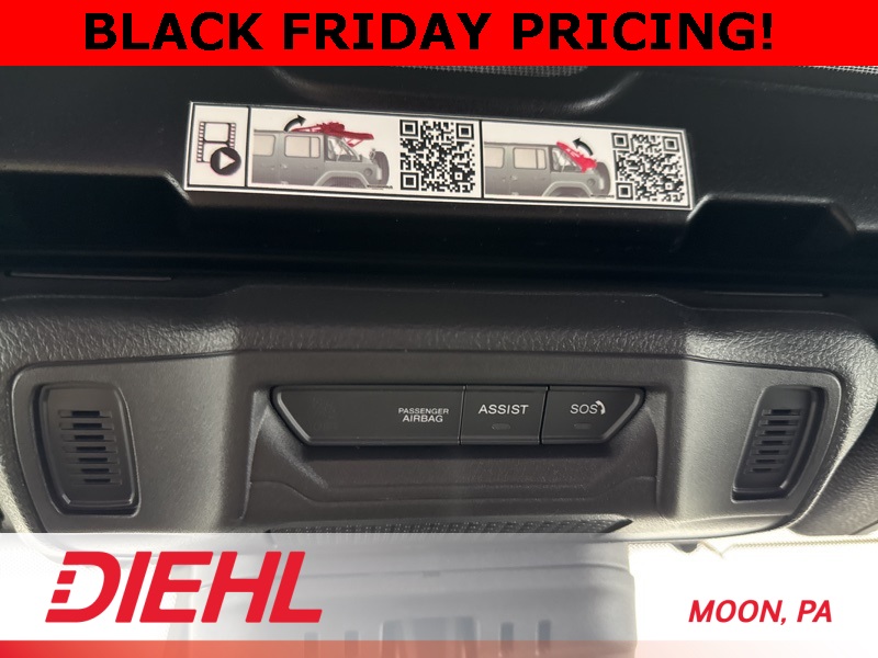 The iconic open air design with removable doors and top keeps every drive exciting, while the refined interior brings modern comfort to the adventure lifestyle. The 12.3 inch touchscreen with Apple CarPlay, Android Auto, and voice command puts advanced tech right at your fingertips. Heated front seats, heated steering wheel, and remote start add convenience to cold mornings, while advanced safety features like Blind Spot Monitoring, Adaptive Cruise Control, and ParkSense Rear Park Assist give peace of mind wherever you roam.