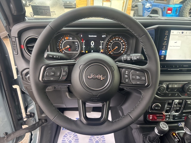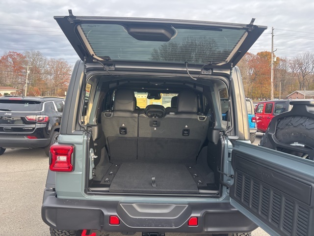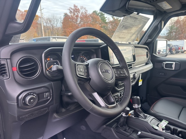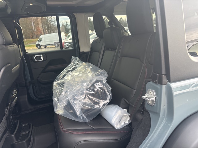 Convenience Group (Heated Front Seats, Heated Steering Wheel, and Universal Garage Door Opener), Quick Order Package 24R Rubicon, 12.3" Touchscreen Display, 4-Wheel Disc Brakes, 4.10 Rear Axle Ratio, 4G LTE Wi-Fi Hot Spot, 8 Speakers, ABS brakes, Air Conditioning, Alloy wheels, AM/FM radio: SiriusXM with 360L, Apple CarPlay, Apple CarPlay/Android Auto, Automatic temperature control, Aux Battery, Auxiliary Switches, Black 3-Piece Hard Top, Brake assist, Class II Receiver Hitch, Cloth Low-Back Bucket Seats, Compass, Connectivity - US/Canada, Delay-off headlights, Driver door bin, Driver vanity mirror, Dual front impact airbags, Dual front side impact airbags, Electronic Stability Control, Emergency communication system: Jeep Connect, For More Info, Call 800-643-2112, Freedom Panel Storage Bag, Front anti-roll bar, Front Bucket Seats, Front Center Armrest w/Storage, Front dual zone A/C, Front fog lights, Front reading lights, Fully automatic headlights, Google Android Auto, Heated door mirrors, Illuminated entry, Integrated Center Stack Radio, Integrated roll-over protection, Low tire pressure warning, MOPAR All-Weather Floor Mats, Non-Lock Fuel Cap Without Discriminator, Occupant sensing airbag, Outside temperature display, Overhead airbag, Panic alarm, ParkView Rear Back-Up Camera, Passenger door bin, Passenger vanity mirror, Performance Suspension, Power door mirrors, Power steering, Power windows, Radio data system, Radio: Uconnect 5 with 12.3" Display, Rear anti-roll bar, Rear reading lights, Rear Window Defroster, Rear Window Wiper/Washer, Remote keyless entry, Security system, SiriusXM Radio Service, SiriusXM with 360L, Speed control, Split folding rear seat, Steering wheel mounted audio controls, Stop-Start Dual Battery System, Tachometer, Telescoping steering wheel, Tilt steering wheel, Traction control, Trip computer, Variably intermittent wipers, Voltmeter, and Wheels: 17" x 7.5" Machined/Painted Black. Anvil Clear Coat 2026 Jeep Wrangler Rubicon 4WD 8-Speed Automatic 3.6L V6 24V VVT