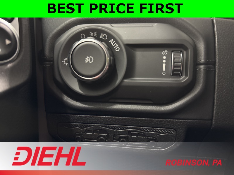 This build includes the Customer Preferred Package 22R, which adds an 8 way power adjustable driver seat and 8 way power passenger seat—something Jeep fans have begged for over the years. The Safety Group adds blind spot monitoring, rear cross path detection, ParkSense rear assist, and LED lights to help guide you through tight nighttime trails or crowded city parking lots. The Black Sunrider Soft Top, body color fender flares, quarter window defroster, and windshield wiper deicer give you all season versatility with classic Jeep style.