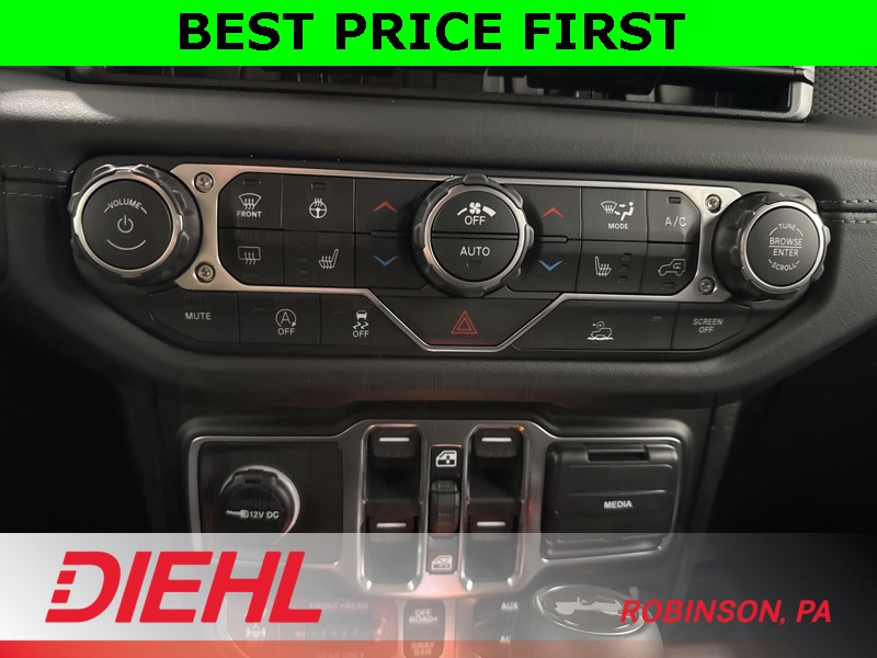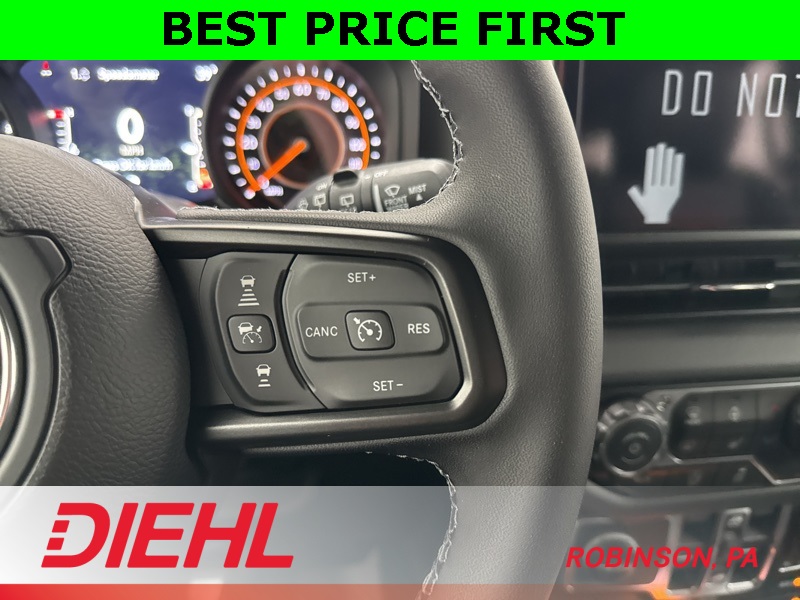 Inside, the Rubicon gives you Jeep’s newest 12.3-inch touchscreen, digital gauge cluster, premium audio, heated seats, heated wheel, remote start, and all the modern comfort you’d never expect in something built to ford streams and scale obstacles. The Anvil paint over black interior gives it a tough, industrial look that turns heads without trying, and the off-road tires, 17-inch wheels, and Rubicon accents pull everything together like it rolled straight out of a magazine shoot.