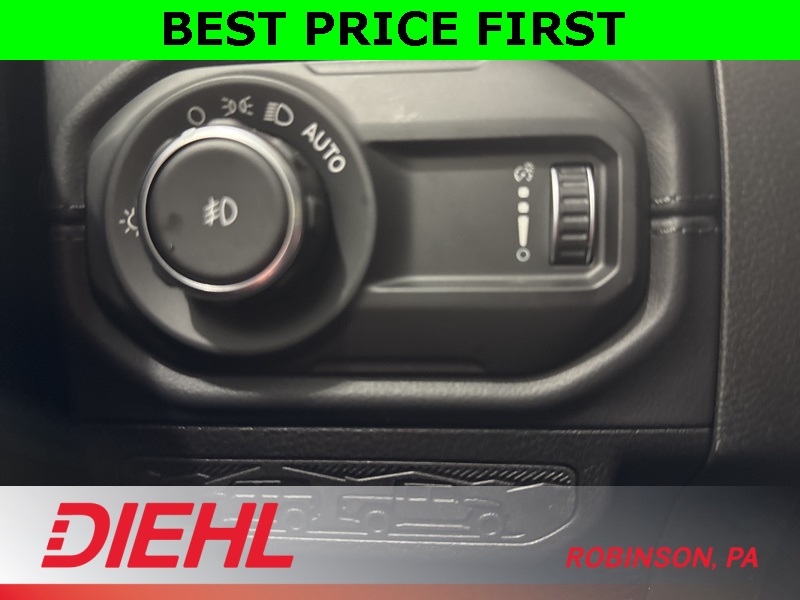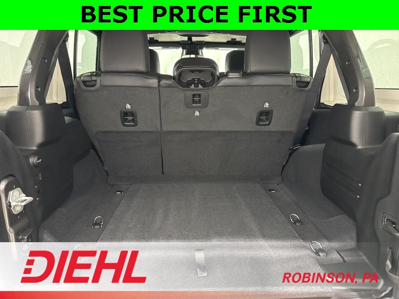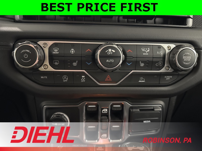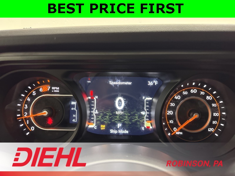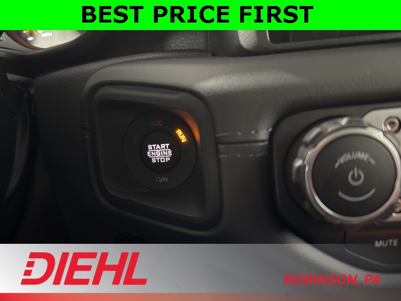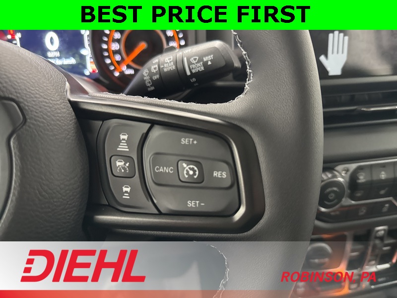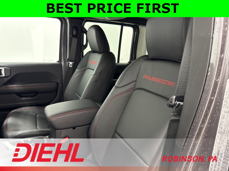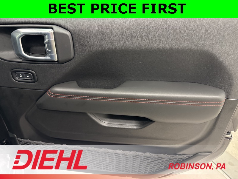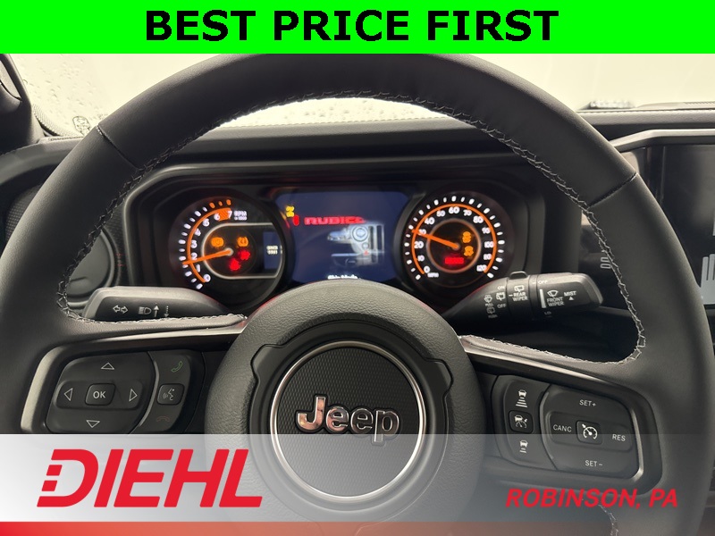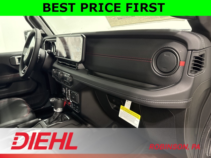 If you’ve been hunting for a Wrangler that looks like it just walked out of a recruitment poster for the U.S. Mountain Division, this Granite Crystal Rubicon is the one. It’s the perfect mix of hardcore off-road engineering and subtle “I definitely climb rocks on the weekends” flex. Rubicon means you get the good stuff: the 4:1 Rock-Trac system, Dana 44 axles, locking differentials, electronic sway-bar disconnect, and a chassis that seems genuinely offended by the idea of pavement. This one builds even further on that foundation with the Customer Preferred Package 22R, giving you the long-awaited power-adjustable driver and passenger seats that Wrangler owners have begged Jeep for since the last ice age. The Safety Group adds blind-spot monitoring, rear cross-path detection, ParkSense, and LED lights bright enough to make deer reconsider their life choices.