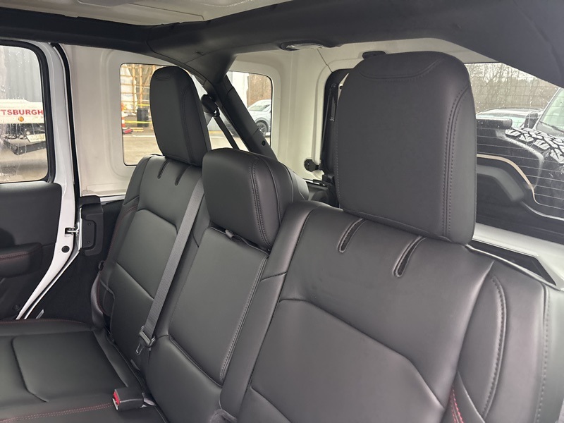 Convenience Group (Heated Front Seats, Heated Steering Wheel, and Universal Garage Door Opener), Quick Order Package 24R Rubicon, Xtreme 35 Tire Package (35" Tire Suspension, Anti-Lock 4-Wheel Disc Perf Brakes, MOPAR Hinge-Gate Reinforcement, MOPAR Jack Spacer, MOPAR Tire Relocation Kit, Wheel Flare Extensions, and Wheels: 17" x 8" Machined with Black Pockets), 12.3" Touchscreen Display, 4-Wheel Disc Brakes, 4G LTE Wi-Fi Hot Spot, 8 Speakers, ABS brakes, Air Conditioning, Alloy wheels, AM/FM radio: SiriusXM with 360L, Apple CarPlay, Apple CarPlay/Android Auto, Automatic temperature control, Aux Battery, Auxiliary Switches, Black 3-Piece Hard Top, Brake assist, Class II Receiver Hitch, Cloth Low-Back Bucket Seats, Compass, Connectivity - US/Canada, Delay-off headlights, Driver door bin, Driver vanity mirror, Dual front impact airbags, Dual front side impact airbags, Electronic Stability Control, Emergency communication system: Jeep Connect, For More Info, Call 800-643-2112, Freedom Panel Storage Bag, Front anti-roll bar, Front Bucket Seats, Front Center Armrest w/Storage, Front dual zone A/C, Front fog lights, Front reading lights, Fully automatic headlights, Google Android Auto, Heated door mirrors, Illuminated entry, Integrated Center Stack Radio, Integrated roll-over protection, Low tire pressure warning, MOPAR All-Weather Floor Mats, Non-Lock Fuel Cap Without Discriminator, Occupant sensing airbag, Outside temperature display, Overhead airbag, Panic alarm, ParkView Rear Back-Up Camera, Passenger door bin, Passenger vanity mirror, Performance Suspension, Power door mirrors, Power steering, Power windows, Radio data system, Radio: Uconnect 5 with 12.3" Display, Rear anti-roll bar, Rear reading lights, Rear Window Defroster, Rear Window Wiper/Washer, Remote keyless entry, Security system, SiriusXM Radio Service, SiriusXM with 360L, Speed control, Split folding rear seat, Steering wheel mounted audio controls, Stop-Start Dual Battery System, Tachometer, Telescoping steering wheel, Tilt steering wheel, Traction control, Trip computer, Variably intermittent wipers, Voltmeter, and Wheels: 17" x 7.5" Machined/Painted Black. Recent Arrival! bright white clearcoat 2026 Jeep Wrangler Rubicon 4WD 8-Speed Automatic 3.6L V6 24V VVT