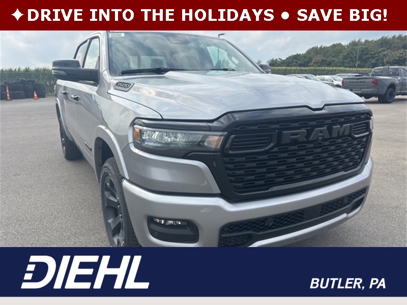 Bed Utility Group (Exterior 115V AC Outlet, MOPAR 4 Adjustable Cargo Tie-Down Hooks, MOPAR Spray In Bedliner, and Pick-Up Box Lighting), Big Horn Level 2 Equipment Group (115V Auxiliary Power Outlet, 115V Auxiliary Rear Power Outlet, 12" Touchscreen Display, 2nd Row In Floor Storage Bins, 3 Rear Seat Head Restraints, 4 Way Front Headrests, 400W Inverter, 4G LTE Wi-Fi Hot Spot, 9 Amplified Speakers w/Subwoofer, Air Conditioning ATC w/Dual Zone Control, Apple CarPlay, Auto Power-Folding Mirrors, Auto-Dimming Exterior Driver Mirror, Auto-Dimming Rear-View Mirror, Black Exterior Mirrors, Black Premium Power Mirrors, Body Color Fender Flares, Bucket Seats, Center Console Parts Module, Cluster 7.0" TFT Color Display, Configurable Drive Mode, Connected Travel & Traffic Services, Connectivity - US/Canada, Convex Wide-Angle Exterior Mirror Insert, Deluxe Cloth Bucket Seats, Disassociated Touchscreen Display, Exterior Mirrors Courtesy Lamps, Exterior Mirrors w/Heating Element, Exterior Mirrors w/Supplemental Signals, Front Seat Back Map Pockets, Full Length Floor Console, Global Telematics Box Module (TBM), Glove Box Lamp, Google Android Auto, GPS Antenna Input, GPS Navigation, HD Radio, Heated Front Seats, Heated Steering Wheel, Integrated Center Stack Radio, Integrated Voice Command w/Bluetooth, Leather Wrapped Steering Wheel, LED Dome Lamp w/On/Off Switch, LED Footwell Lighting, Manual Adjust 4-Way Front Passenger Seat, Media Hub w/2 Charge Only USBs, Overhead LED Lamps, Power 2-Way Driver Lumbar Adjust, Power Adjust 8-Way Driver Seat, Power Adjustable Pedals, Premium Overhead Console, Radio: Uconnect 5 Nav w/12.0" Display, Rear 60/40 Folding Seat, Rear Center Armrest, Rear Power Sliding Window, Rear Window Defroster, Remote Tailgate Release, Security Alarm, SiriusXM Radio Service, SiriusXM w/360L, Steering Wheel Mounted Audio Controls, Sun Visors w/Illuminated Vanity Mirrors, Universal Garage Door Opener, USB Host Flip, and Wheels: 20" x 9" Aluminum Chrome Clad (WRK)), Night Edition (Accent Color Door Handles, Accent Color Premium Power Mirrors, Accent Color Tailgate Handle, Anti-Spin Differential Rear Axle, Black Exterior Truck Badging, Black Headlamp Bezels, Black Interior Accents, Black Painted Exterior Mirrors Caps, Black Tail Lamp Bezels, Body Color Front Bumper, Body Color Rear Bumper w/Step Pads, Dual Exhaust w/Black Tips, Grille Black Surround Black Mesh, RAM Grille Badge - Black, and Wheels: 20" x 9.0" Aluminum Painted Clad), Quick Order Package 21Z Big Horn, 4-Wheel Disc Brakes, 48V Belt Starter Generator, 6 Speakers, ABS brakes, Air Conditioning, Alloy wheels, AM/FM radio, Apple CarPlay/Android Auto, Auto High-beam Headlights, Brake assist, Bumpers: chrome, Cloth Bucket Seats, Compass, Delay-off headlights, Driver door bin, Dual front impact airbags, Dual front side impact airbags, Electronic Stability Control, Front anti-roll bar, Front Bucket Seats, Front Center Armrest w/Storage, Front fog lights, Front reading lights, Front wheel independent suspension, Fully automatic headlights, Heated door mirrors, Illuminated entry, Low tire pressure warning, Manual Adjust 4-Way Driver Seat, Manual Folding Exterior Mirrors, MOPAR Front & Rear Rubber Floor Mats, Occupant sensing airbag, Outside temperature display, Overhead airbag, Overhead console, Panic alarm, ParkView Rear Back-Up Camera, Passenger door bin, Passenger vanity mirror, Power door mirrors, Power steering, Power windows, Radio data system, Radio: Uconnect 5 W w/8.4" Display, RAM Grille Badge - Chrome, Rear anti-roll bar, Rear step bumper, Rear Wheelhouse Liners, Remote keyless entry, Speed control, Supplier Part Tracking (J-1), Tachometer, Telescoping steering wheel, Tilt steering wheel, Traction control, Trailer Brake Control, Trip computer, Variably intermittent wipers, Voltmeter, and Wheels: 18" x 8" Cast-Aluminum Pai Price includes: $2000 - 2026 National SFS Lease Loyalty Bonus Cash . Exp. 12/01/2025 $3500 - 2026 National Retail Consumer Cash . Exp. 12/01/2025
