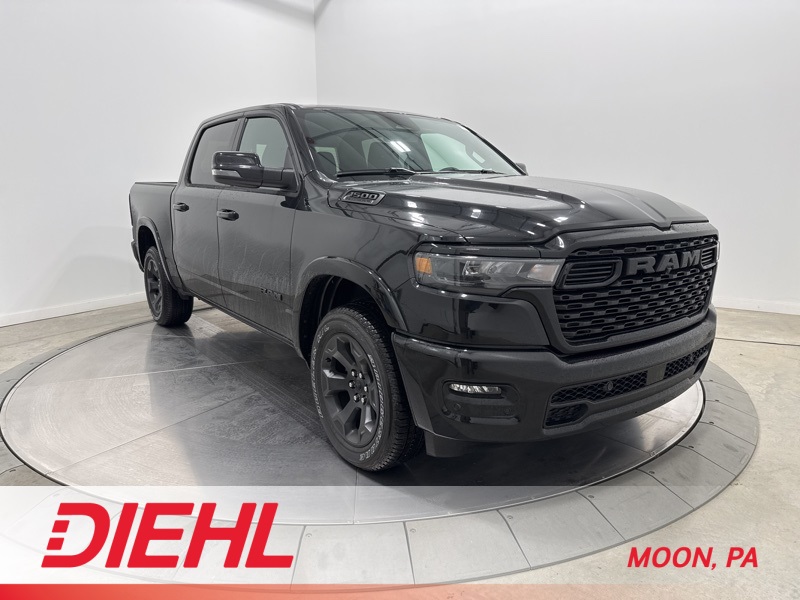 The 2026 Ram 1500 Big Horn Crew Cab 4x4 is what you get when power, polish, and pure American grit form a truck-shaped masterpiece. Beneath the hood roars the 3.6L Pentastar V6 with eTorque, matched to an 8-speed automatic thats smoother than a Steelers fan celebrating on Carson Street. This Big Horn means business with four-wheel drive, heavy-duty shock absorbers, and an electronic shift-on-demand transfer case ready to handle whatever Western PA roadsor off-roadsthrow its way. Inside, comfort meets command with a Uconnect 5 system on an 8.4-inch touchscreen, Apple CarPlay, Android Auto, and dual-zone climate control. The premium cloth bench seat keeps long drives civilized, while the crew cab gives your passengers legroom thatll make them question why they ever owned a sedan. Outside, it flexes 18-inch aluminum wheels, chrome bumpers, and LED bed lighting, perfect for late-night tailgate missions. Safety features like blind spot monitoring, ParkSense front and rear assist, and trailer brake control keep you confidently in charge whether youre towing, hauling, or just flexing at red lights. If youre hunting for the best new truck deals near Moon Township PA or searching for a new Ram 1500 for sale in Pittsburgh, this Big Horn is your golden ticket. Visit Diehl of Moon today and see why Ram trucks rule Western PA. Price includes: $2000 - 2026 National SFS Lease Loyalty Bonus Cash . Exp. 12/01/2025 $3500 - 2026 National Retail Consumer Cash . Exp. 12/01/2025 $500 - 2026 National 2026 First Responder Bonus Cash . Exp. 01/05/2026