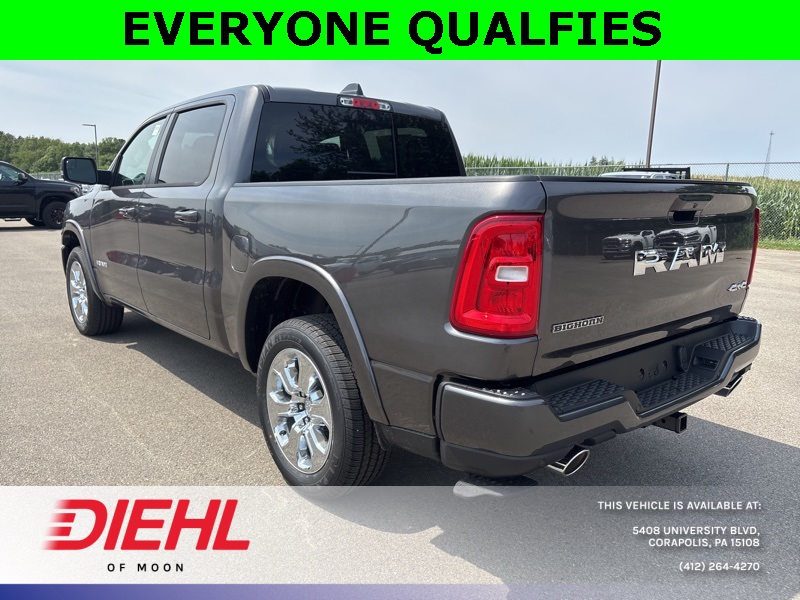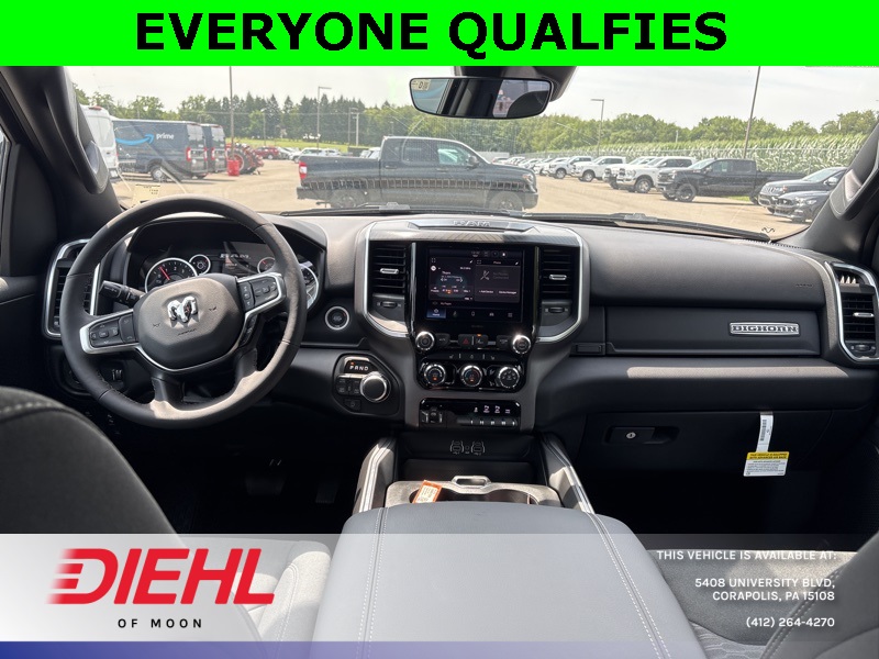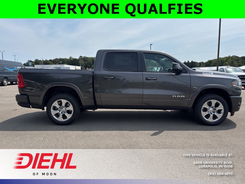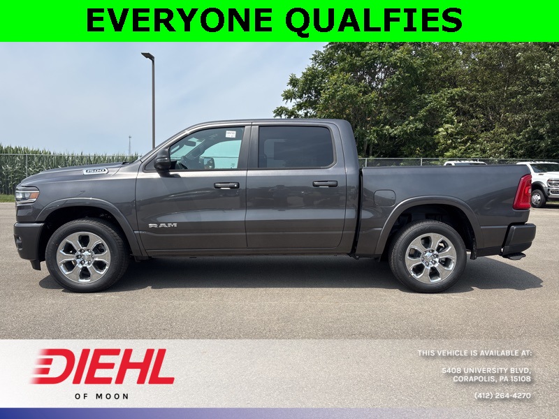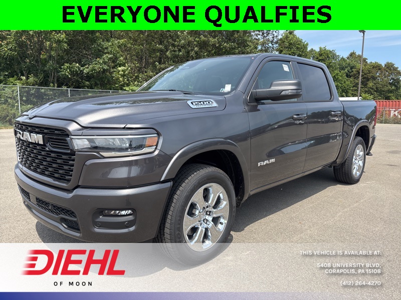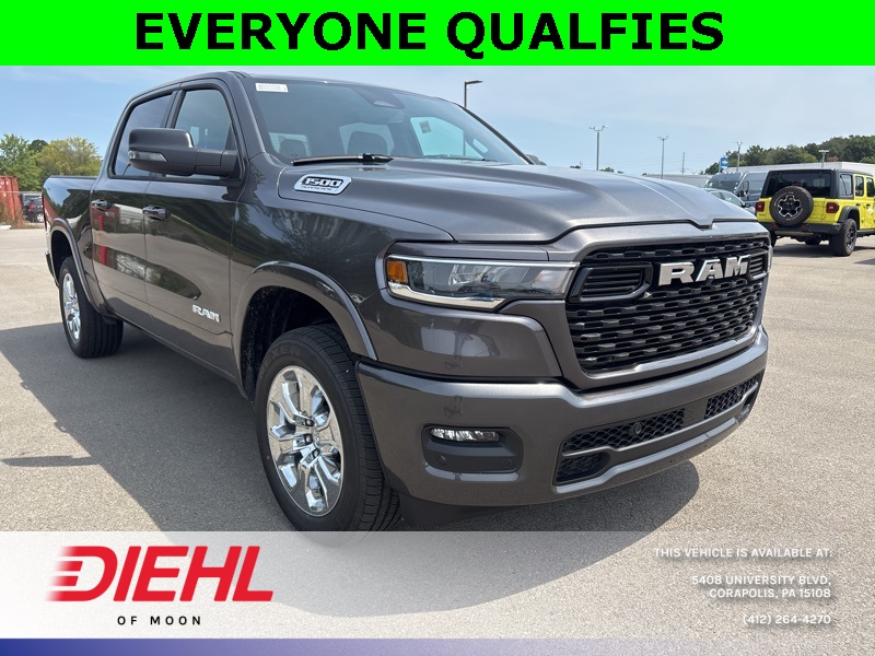 If you've been waiting for a truck that can be both the king of the jobsite and the ruler of Saturday tailgates, let me introduce the 2026 Ram 1500 Big Horn Crew Cab 4x4. Painted in Granite Crystal Metallic and riding high on its rugged stance, this full-size pickup is the perfect balance of brute force and modern refinement, making it the most exciting new Ram 1500 for sale in Pittsburgh.Power comes from the legendary 5.7L HEMI V8 with eTorque, giving you the kind of strength that laughs at trailers and makes highway merges feel like launching a rocket. Paired with an 8-speed automatic transmission, the drive is smoother than a steelworkers storytelling voice at Primantis. With optional Sport Appearance Package 2, chrome accents, dual exhaust tips, and 20-inch wheels, this truck doesn't just arrive, it makes an entrance.Inside, you'll find the Deluxe Cloth bucket seats, a power-adjustable drivers seat, and the Uconnect 5 system with a crisp 12-inch touchscreen. Its packed with features like Apple CarPlay, Android Auto, and a Wi-Fi hotspot, making it part mobile office, part family entertainment hub. Add in advanced safety like Forward Collision Warning, Blind Spot Monitoring, and ParkSense front and rear sensors, and you've got confidence whether you're hauling gear through Moon Township or parallel parking in downtown Pittsburgh.For those chasing the best new truck deals near Moon Township PA, this Ram 1500 Big Horn delivers the lifestyle upgrade you didn't know you needed. From grocery runs to towing boats down the Ohio River, its versatile, stylish, and ready for anything. Visit Diehl of Moon, your trusted Ram 1500 dealership in Western PA, and take this HEMI-powered legend for a spin today before someone else claims it as their own.Disclaimer:New vehicle pricing includes all offers and incentives. Tax, Title and Tags not included in vehicle prices shown and must be paid by the purchaser. While great effort is made to ensure the accuracy of the information on this site, errors do occur so please verify information with a customer service rep. This is easily done by calling us at (412)-264-4270 or by visiting us at the dealership.All pricing and details are believed to be accurate, but we do not warrant or guarantee such accuracy. The prices shown above, may vary from region to region, as will incentives, and are subject to change. Vehicle information is based off standard equipment and may vary from vehicle to vehicle. Call or email for complete vehicle specific information. $2,000 - Exp. 10/01/2025