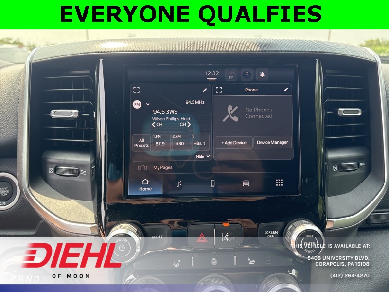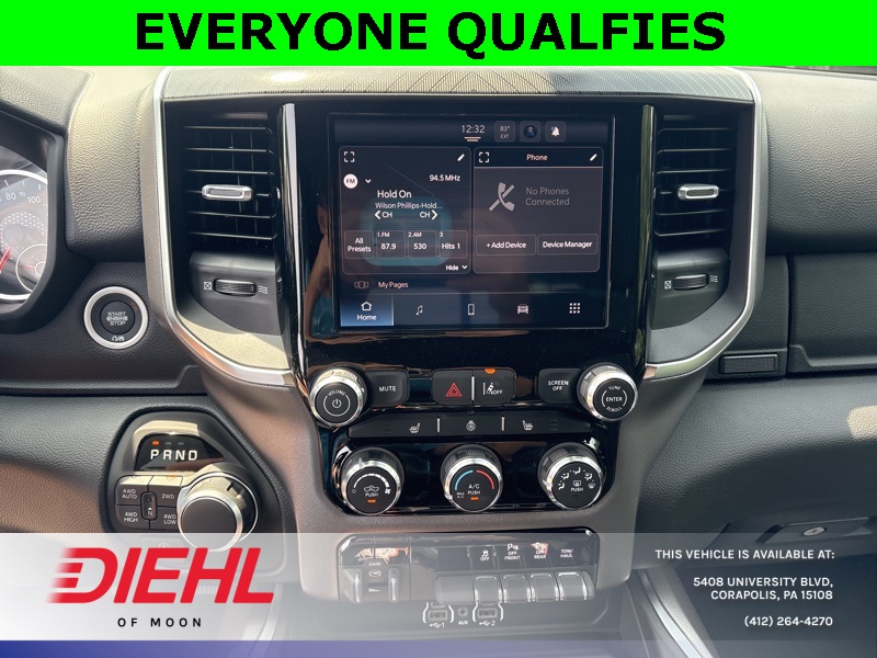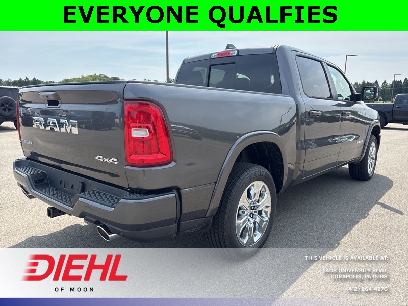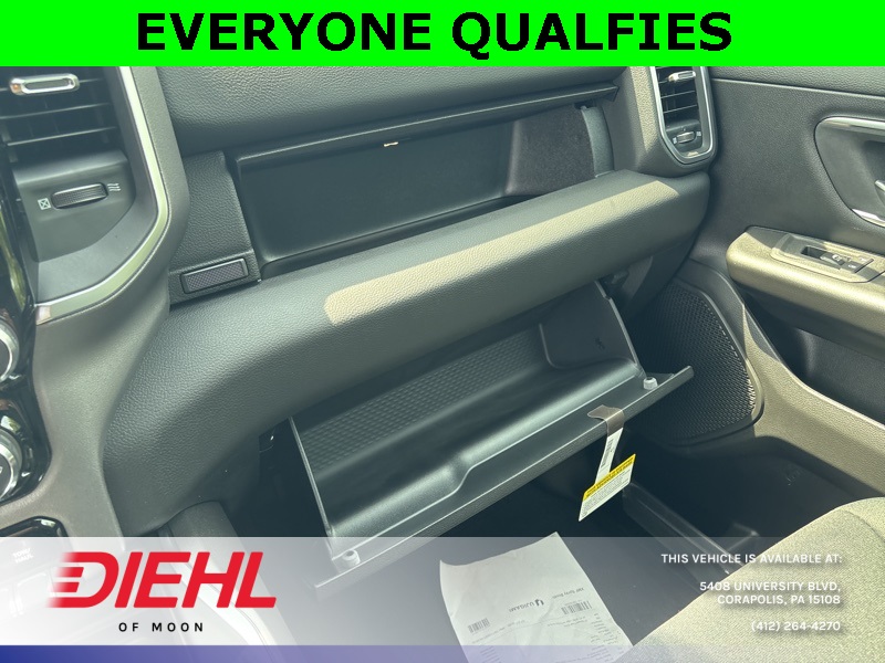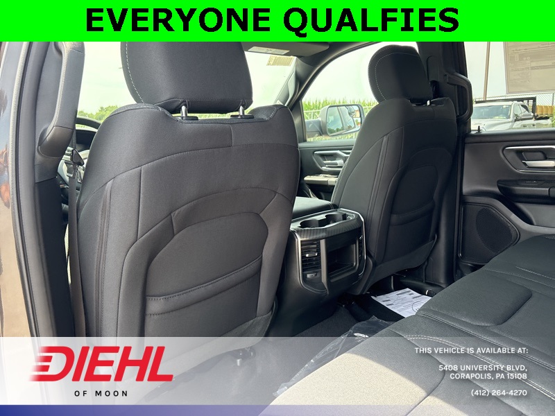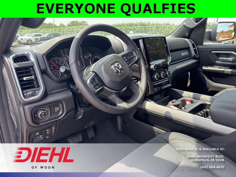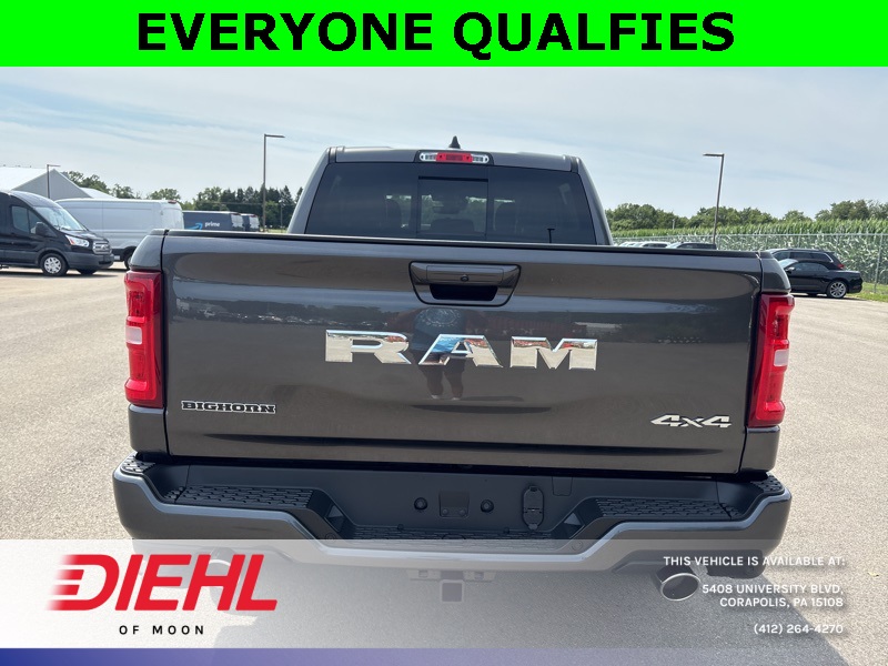 If you've been waiting for a truck that can be both the king of the jobsite and the ruler of Saturday tailgates, let me introduce the 2026 Ram 1500 Big Horn Crew Cab 4x4. Painted in Granite Crystal Metallic and riding high on its rugged stance, this full-size pickup is the perfect balance of brute force and modern refinement, making it the most exciting new Ram 1500 for sale in Pittsburgh.Power comes from the legendary 5.7L HEMI V8 with eTorque, giving you the kind of strength that laughs at trailers and makes highway merges feel like launching a rocket. Paired with an 8-speed automatic transmission, the drive is smoother than a steelworkers storytelling voice at Primantis. With optional Sport Appearance Package 2, chrome accents, dual exhaust tips, and 20-inch wheels, this truck doesn't just arrive, it makes an entrance.Inside, you'll find the Deluxe Cloth bucket seats, a power-adjustable drivers seat, and the Uconnect 5 system with a crisp 12-inch touchscreen. Its packed with features like Apple CarPlay, Android Auto, and a Wi-Fi hotspot, making it part mobile office, part family entertainment hub. Add in advanced safety like Forward Collision Warning, Blind Spot Monitoring, and ParkSense front and rear sensors, and you've got confidence whether you're hauling gear through Moon Township or parallel parking in downtown Pittsburgh.For those chasing the best new truck deals near Moon Township PA, this Ram 1500 Big Horn delivers the lifestyle upgrade you didn't know you needed. From grocery runs to towing boats down the Ohio River, its versatile, stylish, and ready for anything. Visit Diehl of Moon, your trusted Ram 1500 dealership in Western PA, and take this HEMI-powered legend for a spin today before someone else claims it as their own.Disclaimer:New vehicle pricing includes all offers and incentives. Tax, Title and Tags not included in vehicle prices shown and must be paid by the purchaser. While great effort is made to ensure the accuracy of the information on this site, errors do occur so please verify information with a customer service rep. This is easily done by calling us at (412)-264-4270 or by visiting us at the dealership.All pricing and details are believed to be accurate, but we do not warrant or guarantee such accuracy. The prices shown above, may vary from region to region, as will incentives, and are subject to change. Vehicle information is based off standard equipment and may vary from vehicle to vehicle. Call or email for complete vehicle specific information. $2,000 - Exp. 10/01/2025