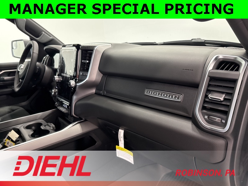 Whether you're climbing mountains, crushing workdays, or just making an entrance at the local drive-thru, this 2026 Ram 1500 Big Horn Crew Cab is built to make every mile memorable. Come see it today at Diehl of Robinson. But hurry... trucks like this don’t sit still for long. Schedule your test drive now and let this HEMI-powered head-turner speak for itself. Price includes: $2000 - 2026 National Holiday Select Inventory Bonus Cash. Exp. 01/05/2026 $2000 - 2026 National SFS Lease Loyalty Bonus Cash . Exp. 01/05/2026 $3500 - 2026 National Retail Consumer Cash . Exp. 01/05/2026