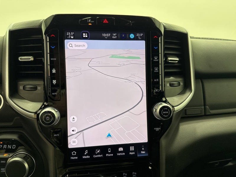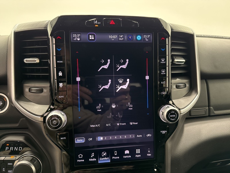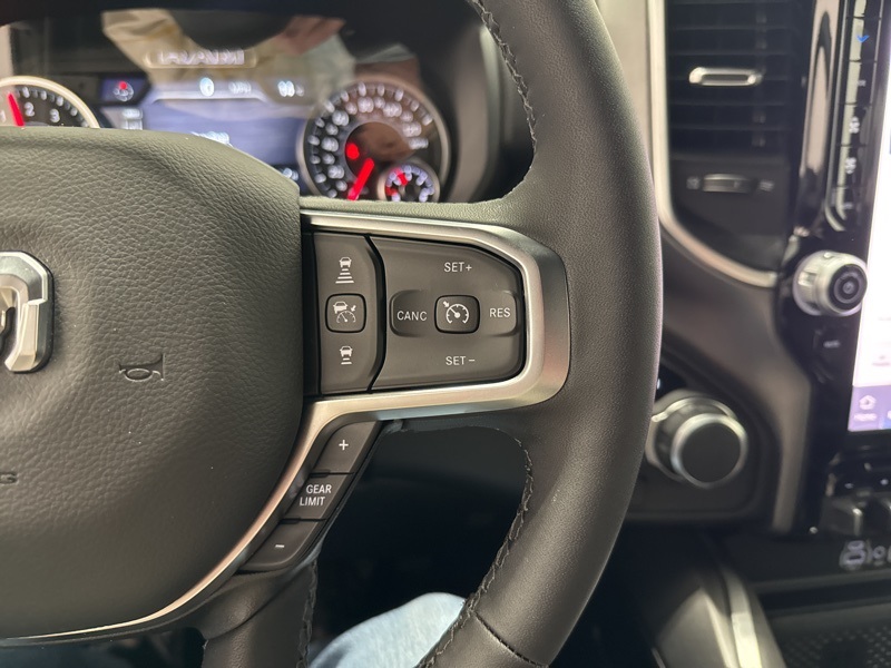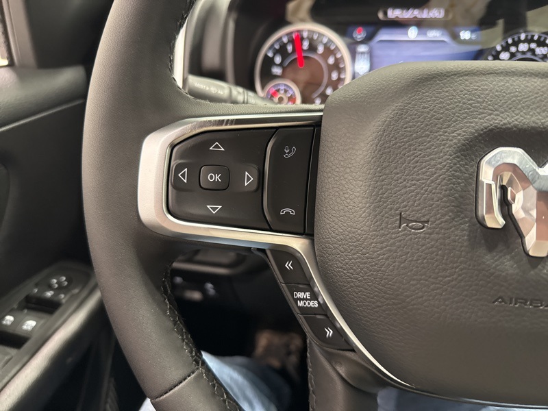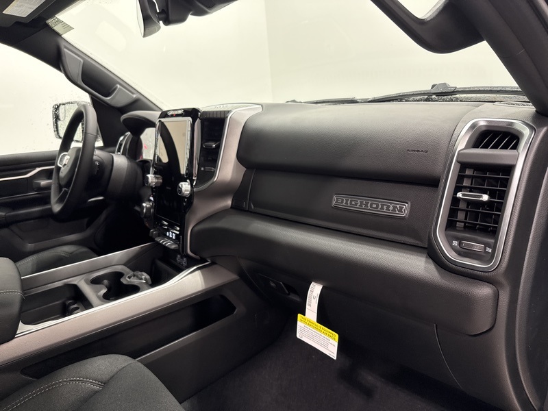 Inside the cabin, the Big Horn Level 2 Equipment Group adds an impressive level of comfort and technology. Deluxe cloth bucket seats, heated front seats, and a heated steering wheel help make every drive more enjoyable. The power adjustable driver seat with lumbar support and power adjustable pedals make it easy to find the perfect driving position, while smart storage like second row in floor storage bins and a full length floor console keep everything organized.