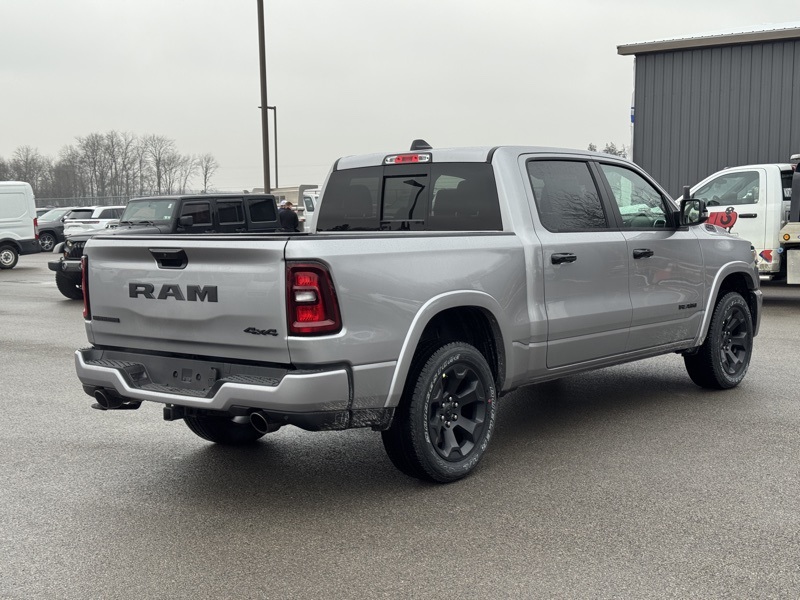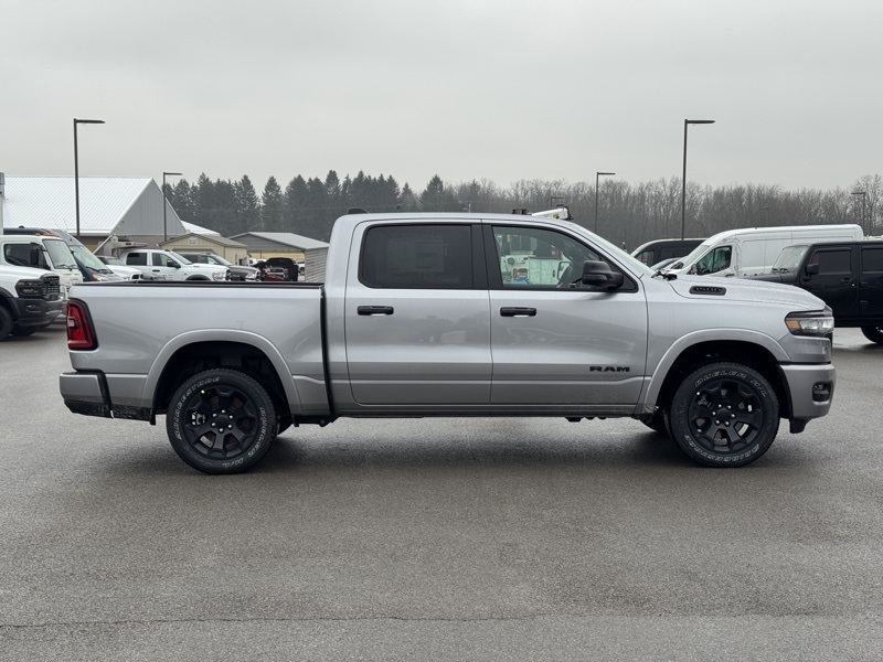Bed Utility Group (Exterior 115V AC Outlet, MOPAR 4 Adjustable Cargo Tie-Down Hooks, MOPAR Spray in Bedliner, and Pick-Up Box Lighting), Big Horn Level 2 Equipment Group (115V Auxiliary Power Outlet, 115V Auxiliary Rear Power Outlet, 12" Touchscreen Display, 2nd Row in Floor Storage Bins, 3 Rear Seat Head Restraints, 4 Way Front Headrests, 400W Inverter, 4G LTE Wi-Fi Hot Spot, 9 Amplified Speakers with Subwoofer, Air Conditioning ATC with Dual Zone Control, Apple CarPlay, Auto Power-Folding Mirrors, Auto-Dimming Exterior Driver Mirror, Auto-Dimming Rear-View Mirror, Black Exterior Mirrors, Black Premium Power Mirrors, Body Color Fender Flares, Bucket Seats, Center Console Parts Module, Cluster 7.0" TFT Color Display, Configurable Drive Mode, Connected Travel and Traffic Services, Connectivity - US/Canada, Convex Wide-Angle Exterior Mirror Insert, Deluxe Cloth Bucket Seats, Disassociated Touchscreen Display, Exterior Mirrors Courtesy Lamps, Exterior Mirrors with Heating Element, Exterior Mirrors with Supplemental Signals, Front Seat Back Map Pockets, Full Length Floor Console, Global Telematics Box Module, Glove Box Lamp, Google Android Auto, GPS Antenna Input, GPS Navigation, HD Radio, Heated Front Seats, Heated Steering Wheel, Integrated Center Stack Radio, Integrated Voice Command with Bluetooth, Leather Wrapped Steering Wheel, LED Dome Lamp with on/Off Switch, LED Footwell Lighting, Manual Adjust 4-Way Front Passenger Seat, Media Hub with 2 Charge Only USBs, Overhead LED Lamps, Power 2-Way Driver Lumbar Adjust, Power Adjust 8-Way Driver Seat, Power Adjustable Pedals, Premium Overhead Console, Radio: Uconnect 5 Navigation with 12.0" Display, Rear 60/40 Folding Seat, Rear Center Armrest, Rear Power Sliding Window, Rear Window Defroster, Remote Tailgate Release, Security Alarm, SiriusXM Radio Service, SiriusXM with 360L, Steering Wheel Mounted Audio Controls, Sun Visors with Illuminated Vanity Mirrors, Universal Garage Door Opener, and USB Host Flip), Night Edition (Accent Color Door Handles, Accent Color Premium Power Mirrors, Accent Color Tailgate Handle, Anti-Spin Differential Rear Axle, Black Exterior Truck Badging, Black Headlamp Bezels, Black Interior Accents, Black Painted Exterior Mirrors Caps, Black Tail Lamp Bezels, Body Color Front Bumper, Body Color Rear Bumper with Step Pads, Dual Exhaust with Black Tips, Grille Black Surround Black Mesh, RAM Grille Badge - Black, and Wheels: 20" x 9.0" Aluminum Painted Clad), Quick Order Package 21Z Big Horn, 4-Wheel Disc Brakes, 48V Belt Starter Generator, 6 Speakers, ABS brakes, Air Conditioning, Alloy wheels, AM/FM radio, Apple CarPlay/Android Auto, Auto High-beam Headlights, Brake assist, Bumpers: chrome, Cloth Bucket Seats, Compass, Delay-off headlights, Driver door bin, Dual front impact airbags, Dual front side impact airbags, Electronic Stability Control, Front anti-roll bar, Front Bucket Seats, Front Center Armrest w/Storage, Front fog lights, Front reading lights, Front wheel independent suspension, Fully automatic headlights, Heated door mirrors, Illuminated entry, Low tire pressure warning, Manual Adjust 4-Way Driver Seat, Manual Folding Exterior Mirrors, MOPAR Front and Rear Rubber Floor Mats, Occupant sensing airbag, Outside temperature display, Overhead airbag, Overhead console, Panic alarm, ParkView Rear Back-Up Camera, Passenger door bin, Passenger vanity mirror, Power door mirrors, Power steering, Power windows, Radio data system, Radio: Uconnect 5 W with 8.4" Display, RAM Grille Badge - Chrome, Rear anti-roll bar, Rear step bumper, Rear Wheelhouse Liners, Remote keyless entry, Speed control, Supplier Part Tracking (J-1), Tachometer, Telescoping steering wheel, Tilt steering wheel, Traction control, Trailer Brake Control, Trip computer, Variably intermittent wipers, and Voltmeter. Billet Silver Metallic Clearcoat 20 Price includes: $2000 - 2026 National SFS Lease Loyalty Bonus Cash . Exp. 02/02/2026 $3500 - 2026 National Retail Consumer Cash . Exp. 02/02/2026