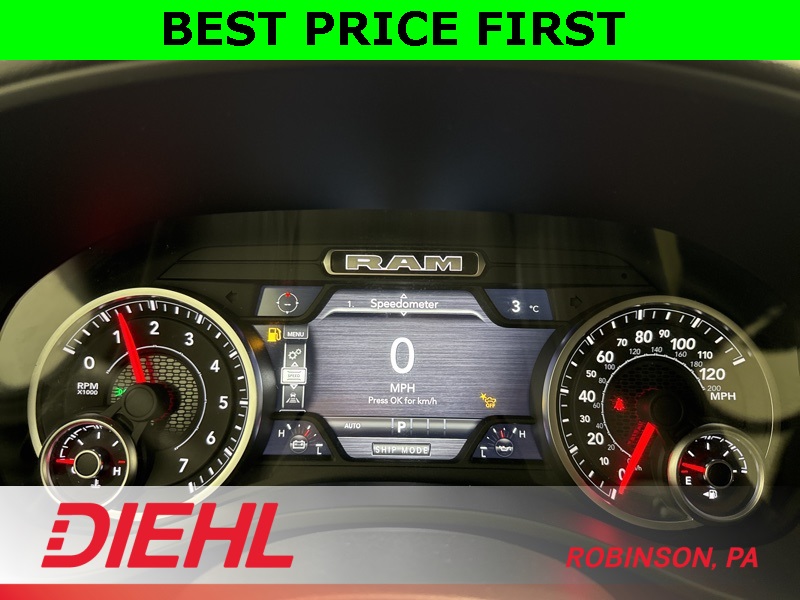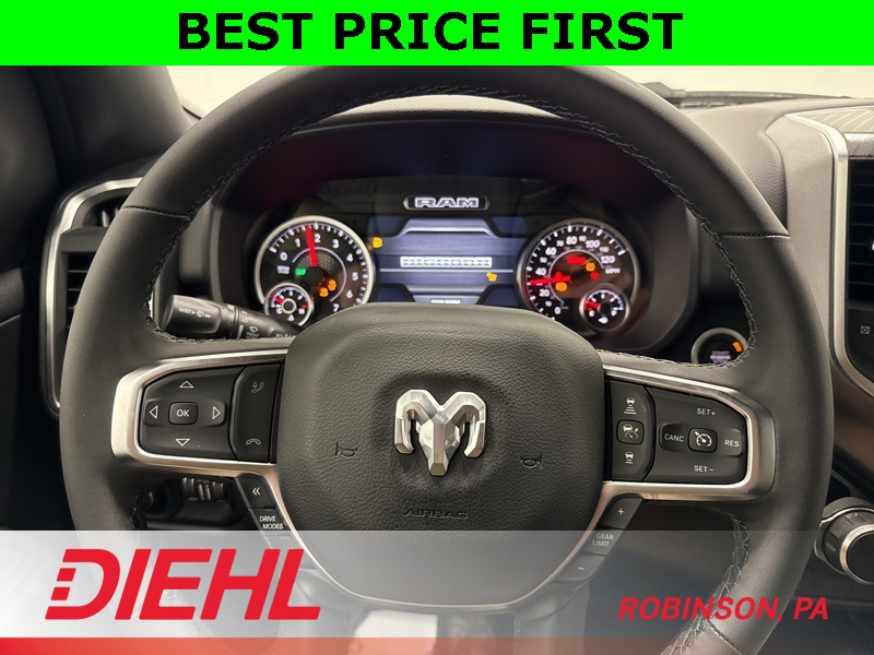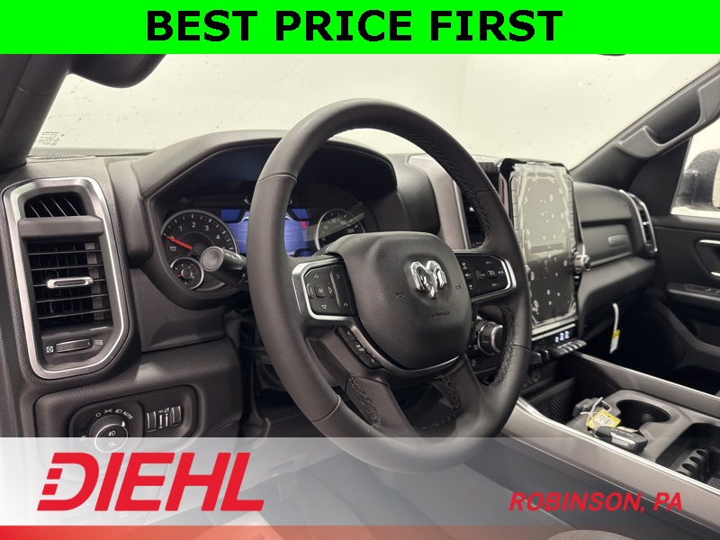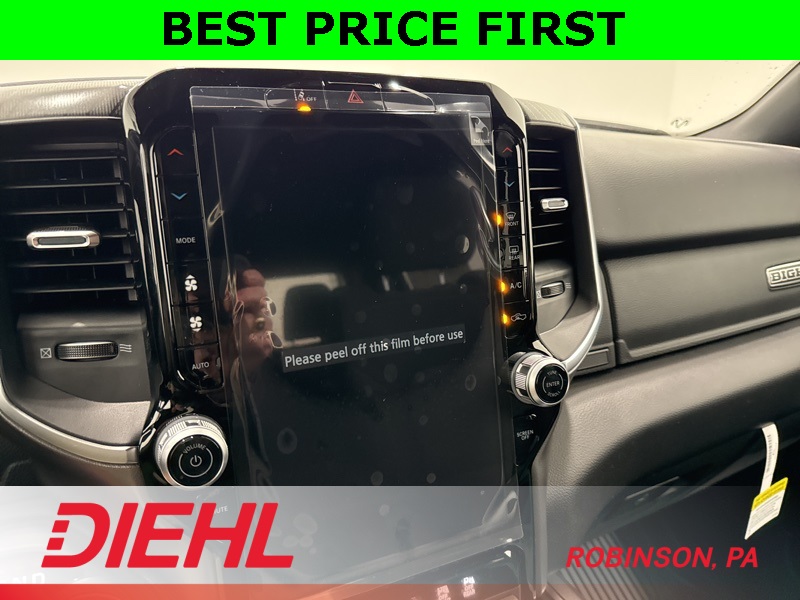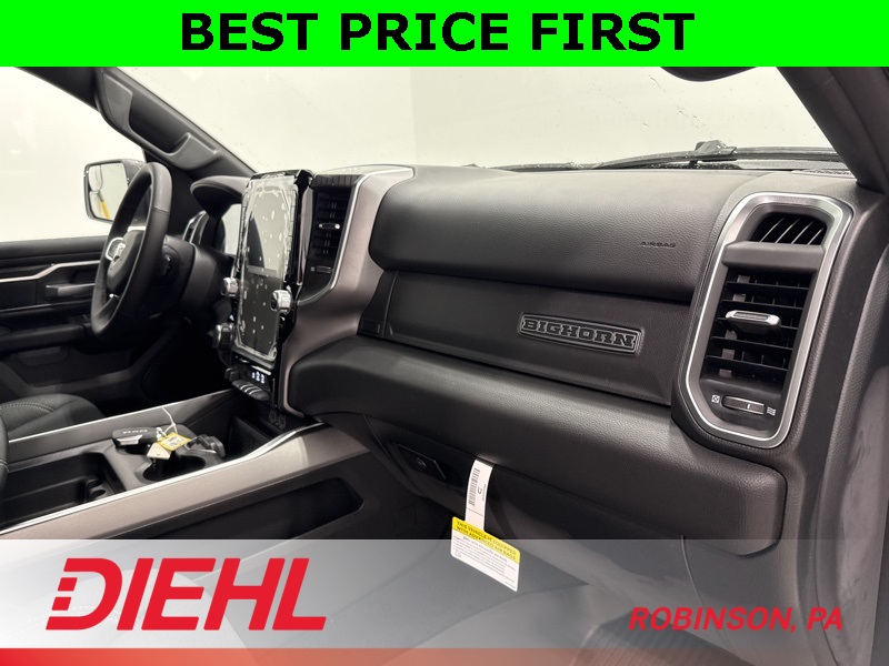 Inside, the Big Horn trim strikes that perfect balance between rugged and comfortable. The crew cab gives you real space for people, gear, or both, while features like power-adjustable pedals, a leather-wrapped steering wheel, and dual-zone automatic climate control make daily driving easy. The Uconnect touchscreen with Apple CarPlay and Android Auto keeps everything simple and intuitive, and the overall layout feels clean, practical, and built for real use instead of gimmicks.