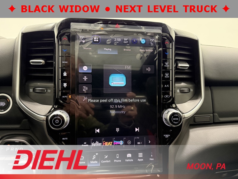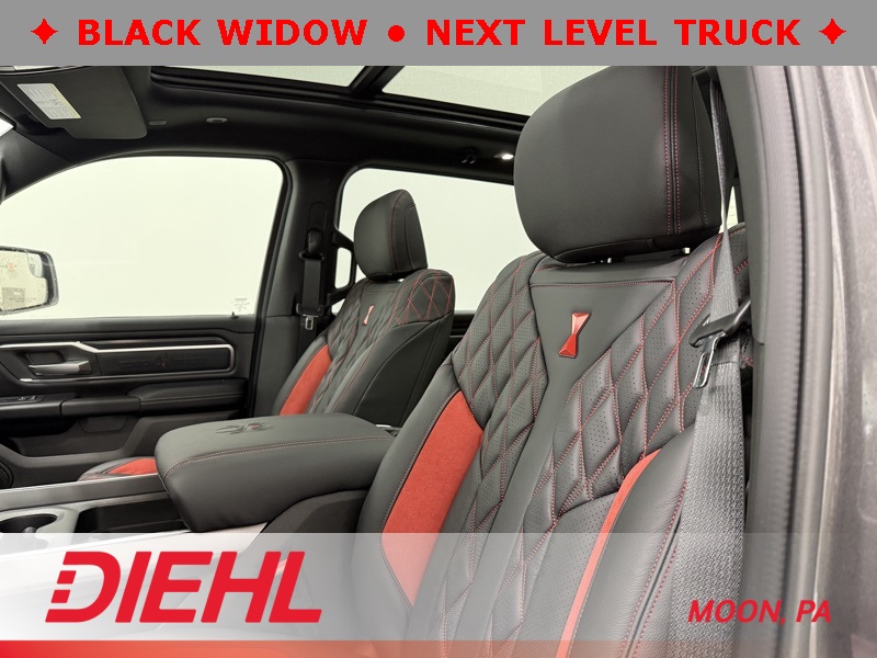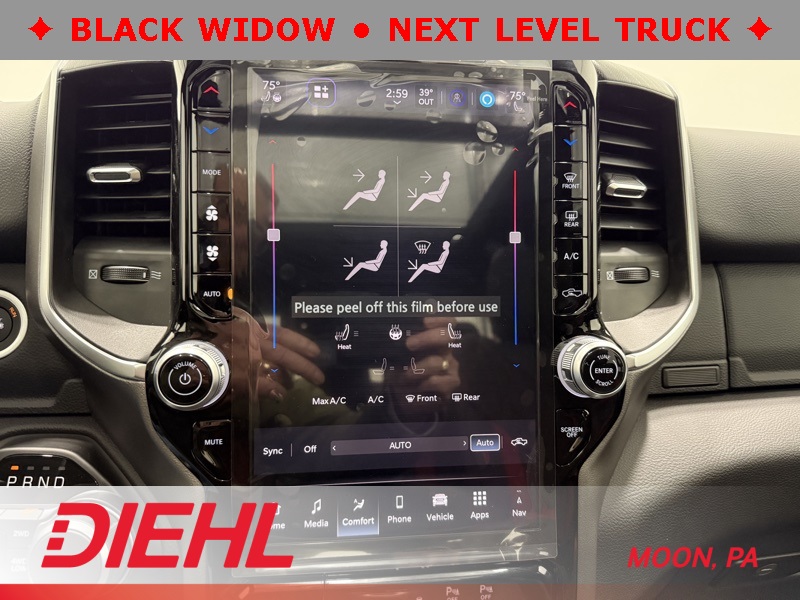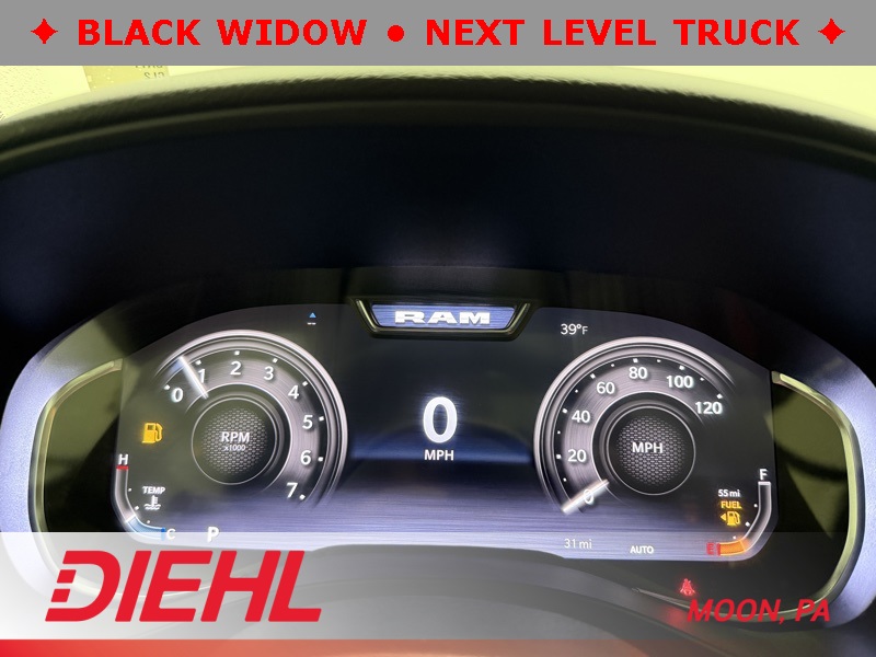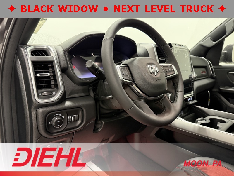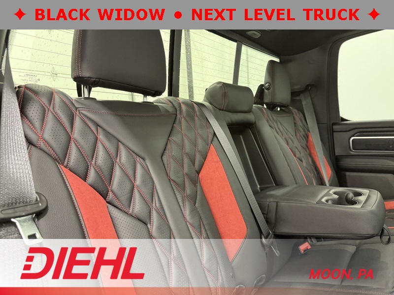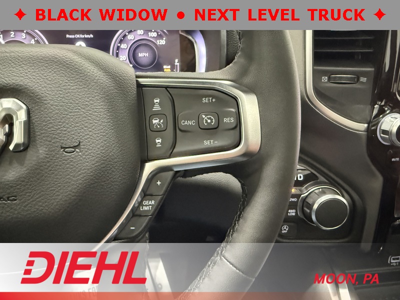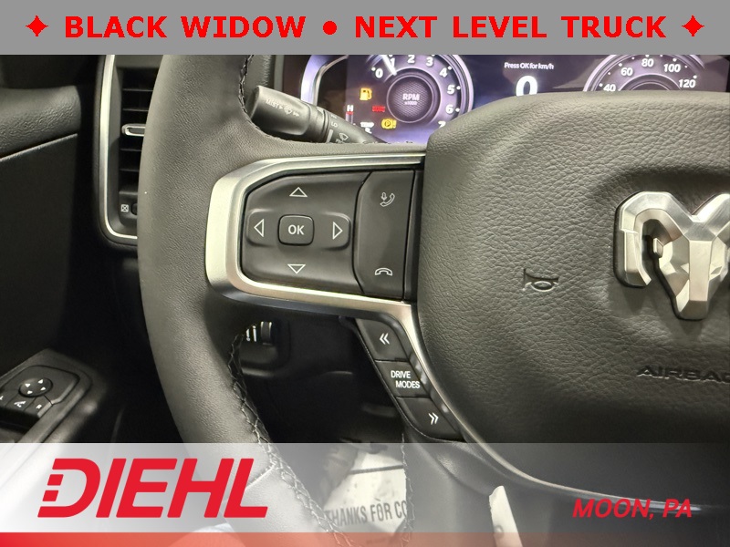 115V Auxiliary Power Outlet, 115V Auxiliary Rear Power Outlet, 12" Touchscreen Display, 2nd Row in Floor Storage Bins, 3 Rear Seat Head Restraints, 4 Way Front Headrests, 400W Inverter, 4G LTE Wi-Fi Hot Spot, 9 Amplified Speakers with Subwoofer, Accent Color Door Handles, Accent Color Premium Power Mirrors, Accent Color Tailgate Handle, Air Conditioning ATC with Dual Zone Control, Anti-Spin Differential Rear Axle, Apple CarPlay, Auto Power-Folding Mirrors, Auto-Dimming Exterior Driver Mirror, Auto-Dimming Rear-View Mirror, Bed Utility Group, Big Horn Level 2 Equipment Group, Black Exterior Mirrors, Black Exterior Truck Badging, Black Headlamp Bezels, Black Interior Accents, Black Painted Exterior Mirrors Caps, Black Premium Power Mirrors, Black Tail Lamp Bezels, Body Color Fender Flares, Body Color Front Bumper, Body Color Rear Bumper with Step Pads, Bucket Seats, Center Console Parts Module, Cluster 7.0" TFT Color Display, Configurable Drive Mode, Connected Travel and Traffic Services, Connectivity - US/Canada, Convex Wide-Angle Exterior Mirror Insert, Deluxe Cloth Bucket Seats, Disassociated Touchscreen Display, Dual Exhaust with Black Tips, Exterior 115V AC Outlet, Exterior Mirrors Courtesy Lamps, Exterior Mirrors with Heating Element, Exterior Mirrors with Supplemental Signals, Front Seat Back Map Pockets, Full Length Floor Console, Global Telematics Box Module, Glove Box Lamp, Google Android Auto, GPS Antenna Input, GPS Navigation, Grille Black Surround Black Mesh, HD Radio, Heated Front Seats, Heated Steering Wheel, Integrated Center Stack Radio, Integrated Voice Command with Bluetooth, Leather Wrapped Steering Wheel, LED Dome Lamp with on/Off Switch, LED Footwell Lighting, Manual Adjust 4-Way Front Passenger Seat, Media Hub with 2 Charge Only USBs, MOPAR 4 Adjustable Cargo Tie-Down Hooks, MOPAR Spray in Bedliner, Night Edition, Overhead LED Lamps, Pick-Up Box Lighting, Power 2-Way Driver Lumbar Adjust, Power Adjust 8-Way Driver Seat, Power Adjustable Pedals, Premium Overhead Console, Quick Order Package 27Z Big Horn, Radio: Uconnect 5 Navigation with 12.0" Display, RAM Grille Badge - Black, Rear 60/40 Folding Seat, Rear Center Armrest, Rear Power Sliding Window, Rear Window Defroster, Remote Tailgate Release, Security Alarm, SiriusXM Radio Service, SiriusXM with 360L, Steering Wheel Mounted Audio Controls, Sun Visors with Illuminated Vanity Mirrors, Universal Garage Door Opener, USB Host Flip, Wheels: 20" x 9.0" Aluminum Painted Clad, Wheels: 20" x 9" Aluminum Chrome Clad.