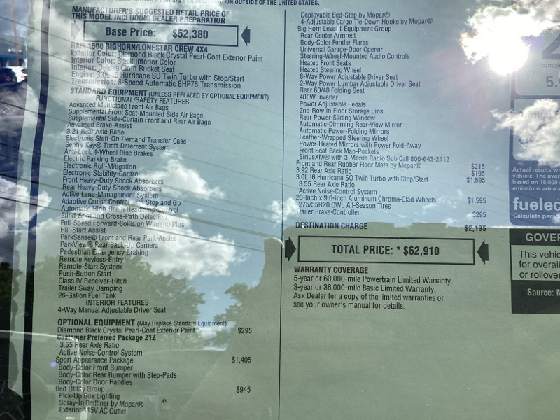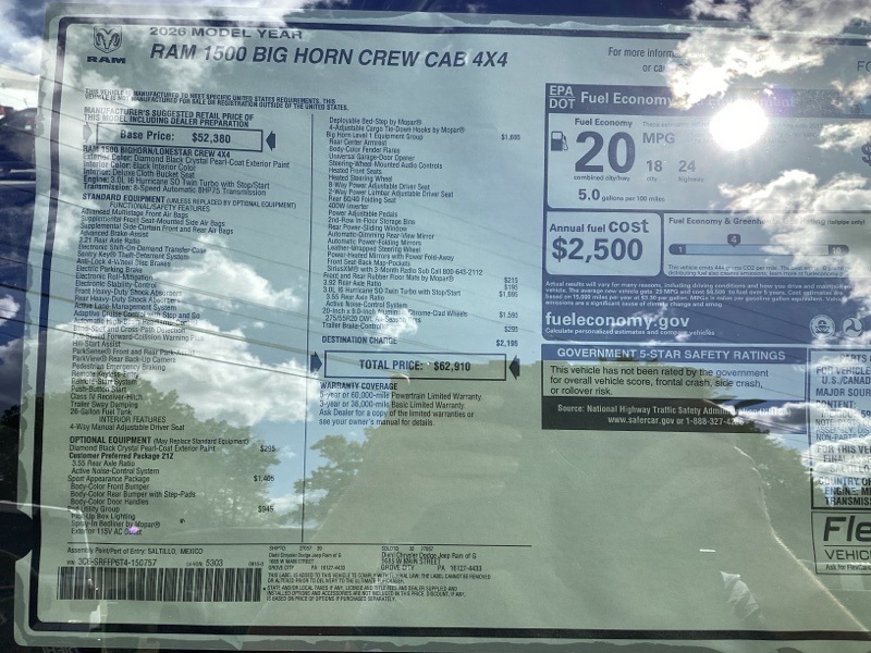 Diamond Black Crystal Pearlcoat 2026 1500 Ram Big Horn/Lone Star 4D Crew Cab 4WD 8-Speed Automatic 3.0L I6 Price includes: $2000 - 2026 National SFS Lease Loyalty Bonus Cash . Exp. 03/31/2026 $3500 - 2026 National Retail Bonus Cash . Exp. 03/31/2026 $500 - 2026 National 2026 First Responder Bonus Cash . Exp. 01/04/2027