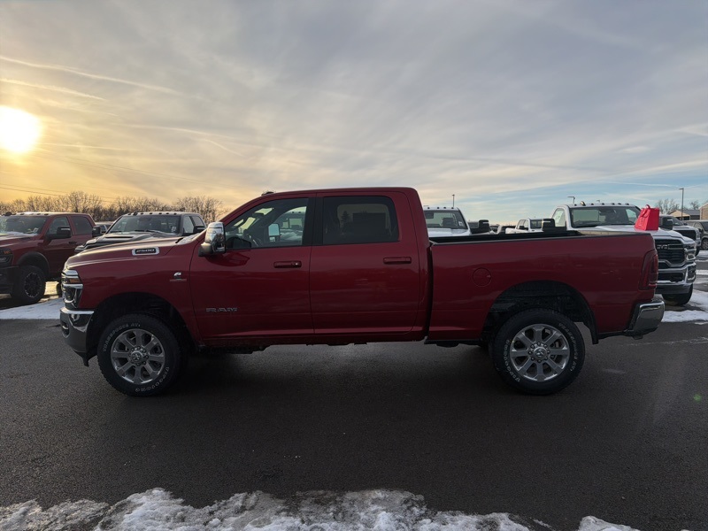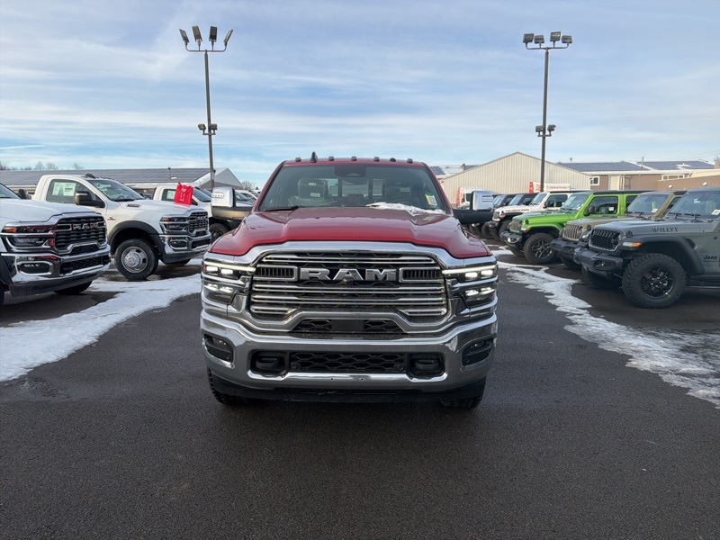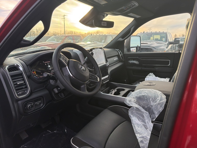 Chrome Bumper Package (Bright Front Bumper and Bright Rear Bumper), Cold Weather Group (Engine Block Heater and MOPAR Winter Front Grille Cover), Laramie Level 1 Plus Equipment Group (#1 Seat Foam Cushion, 115V Auxiliary Rear Power Outlet, 2 Way Rear Headrest Seat, 2nd Row in Floor Storage Bins, 4 Way Front Headrests, Active Lane Management System, Adaptive Steering System, Anti-Spin Differential Rear Axle, Auto Adjust in Reverse Exterior Mirrors, Auto Dim Exterior Mirror, Auto High Beam Headlamp Control, Auto Power-Folding Mirrors, Auto-Dimming Exterior Passenger Mirror, Bucket Seats, Center Stop Lamp with Cargo View Camera, Chrome Exterior Mirrors, Drowsy Driver Detection, Dual Wireless Charging Pad, Exterior Mirrors Courtesy Lamps, Exterior Mirrors with Heating Element, Exterior Mirrors with Memory, Exterior Mirrors with Supplemental Signals, Foam Bottle Insert (door Trim Panel), Folding Flat Load Floor Storage, Forward and Reverse Utility Lights, Front Seat Back Map Pockets, Full Length Upgraded Floor Console, Heated Front Seats, Heated Steering Wheel, High Back Seats, Leather Trimmed Bucket Seats, LED Bed Lighting, Mirror Running Lights, MOPAR Deployable Bed Step, MOPAR Spray in Bedliner, Power 2-Way Driver Lumbar Adjust, Power 2-Way Passenger Lumbar Adjust, Power Adjust 8-Way Driver Seat, Power Adjust 8-Way Front Passenger Seat, Power Adjust Mirrors, Power Adjustable Pedals with Memory, Power Heated Fold Telescopic Mirrors with Memory, Power Telescoping Mirrors, Power-Adjustable Convex Aux Mirrors, Radio/Driver Seat/Mirrors/Pedals Memory, Rain Sensitive Windshield Wipers, Rear 60/40 Folding Seat, Remote Tailgate Release, Traffic Sign Recognition, and Ventilated Front Seats), Quick Order Package 24H Laramie, 10 Speakers, 20" x 8.0" Polished Aluminum Wheels, 4-Wheel Disc Brakes, 4G LTE Wi-Fi Hot Spot, 5th Wheel/Gooseneck Towing Prep Group, ABS brakes, Air Conditioning, Alexa Built-in, Alloy wheels, AM/FM radio: SiriusXM with 360L, Apple CarPlay, Apple CarPlay/Android Auto, Auto-dimming Rear-View mirror, Automatic temperature control, Black Wheel Center Hub, Brake assist, Bumpers: body-color, Center Hub, Clearance Lamps, Compass, Connected Travel and Traffic Services, Connectivity - US/Canada, Dash Pass Thru Wire Circuits, Delay-off headlights, Disassociated Touchscreen Display, Driver door bin, Driver vanity mirror, Dual front impact airbags, Dual front side impact airbags, Electronic Stability Control, Emergency Vehicle Alert System (EVAS), For Details, Visit DriveUconnect.com, For More Info, Call 800-643-2112, Front anti-roll bar, Front Center Armrest w/Storage, Front dual zone A/C, Front fog lights, Front reading lights, Fully automatic headlights, Garage door transmitter, Global Telematics Box Module, Google Android Auto, GPS Antenna Input, GPS Navigation, HD Radio, Heated door mirrors, Heated front seats, Heated steering wheel, Illuminated entry, Instrument Panel Mounted Auxiliary Switches, Integrated Voice Command with Bluetooth, Leather Trim 40/20/40 Bench Seat, Low tire pressure warning, MOPAR Front and Rear Rubber Floor Mats, Navigation System, Occupant sensing airbag, Off-Road Info Pages, Outside temperature display, Overhead airbag, Overhead console, Panic alarm, ParkView Rear Back-Up Camera, Passenger door bin, Passenger vanity mirror, Power door mirrors, Power driver seat, Power passenger seat, Power steering, Power windows, Radio data system, Radio: Uconnect 5 Navigation with 12.0" Display, Rear anti-roll bar, Rear reading lights, Rear seat center armrest, Rear step bumper, Rear window defroster, Remote keyless entry, Security system, Selectable Tire Fill Alert, SiriusXM Radio Service, SiriusXM with 360L, Speed control, Split folding rear seat, Steering wheel mounted audio controls, Tachometer, Tilt steering wheel, Traction control, Trailer Tow Pages, Trip computer, Turn signal indicator mirrors, Variably intermittent Price includes: $1000 - 2026 National Bonus Cash . Exp. 03/02/2026 $500 - Exp. 01/04/2027