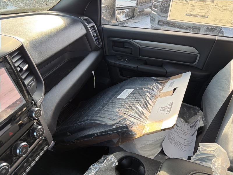 Inside, the heavy duty vinyl 40/20/40 split bench seat is built for durability and flexibility, paired with a front armrest and cupholders, front center armrest with storage, and MOPAR front rubber floor mats. Manual 4-way driver and passenger seats keep things straightforward and reliable for long workdays.