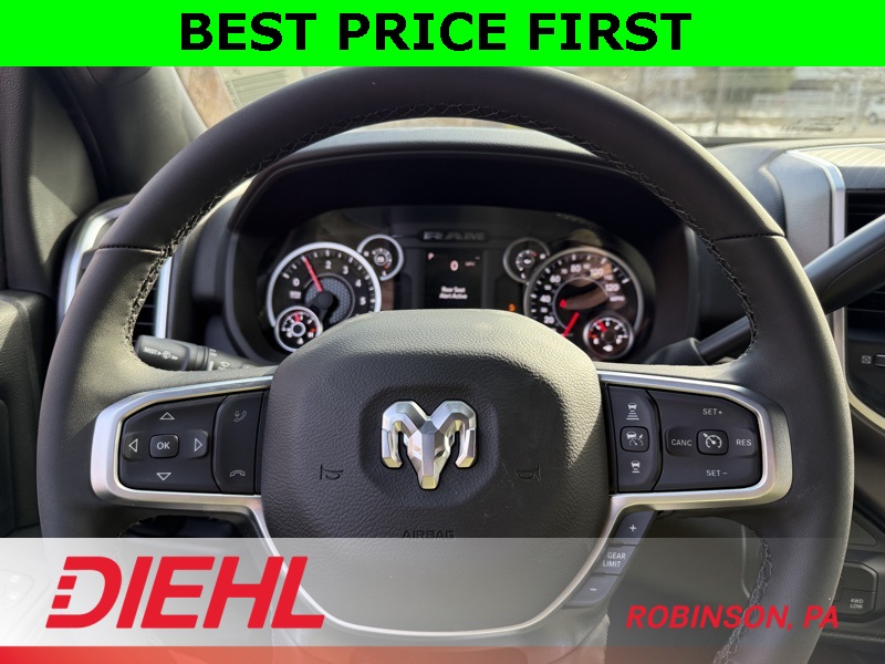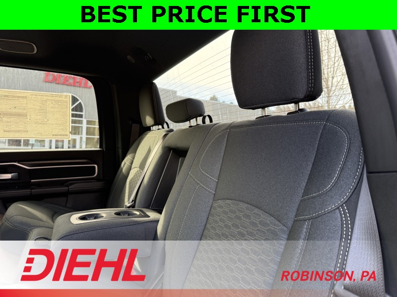 The Big Horn trim adds thoughtful exterior upgrades like 18-inch polished aluminum wheels, LED headlamps, LED fog lamps, clearance lamps, power-adjustable heated mirrors, and spray-in bedliner by Mopar, making this truck as functional as it is sharp. A deployable bed step, wheelhouse liners, and front and rear rubber floor mats add everyday practicality, while the 5th-wheel/gooseneck towing prep group ensures this truck is ready when serious towing is required.