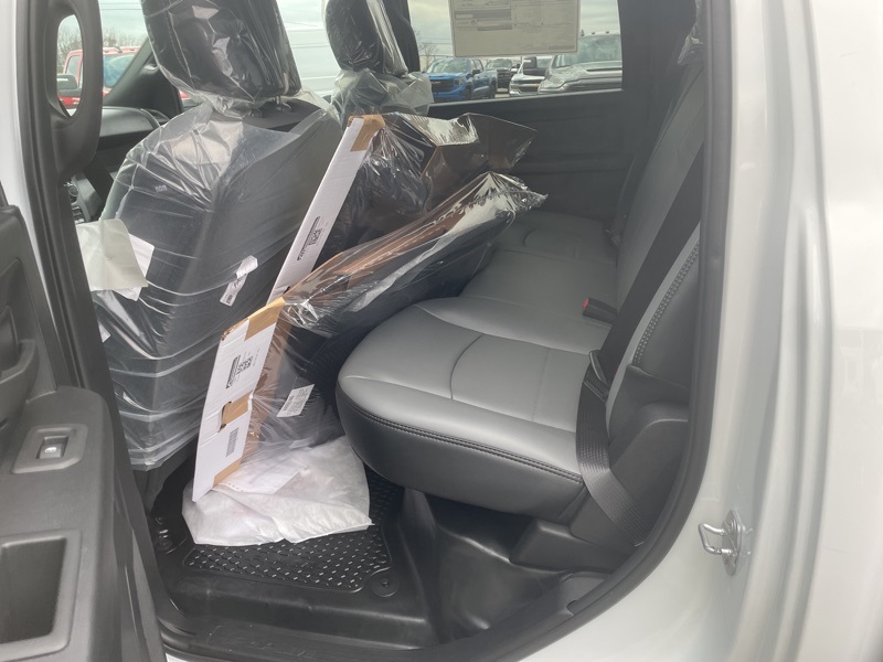 Bed Utility Group (LED Bed Lighting, MOPAR Deployable Bed Step, and MOPAR Spray in Bedliner), Chrome Appearance Group A (115-Volt Auxiliary Front Power Outlet, 400W Inverter, Bright Front Bumper, Bright Rear Bumper, Center Hub, Chrome Grille Surround, Exterior 115V AC Outlet, Matte Black Mesh with Chrome Grille, and Wheels: 18" x 8.0" Steel Chrome Clad), Commercial Features Package (ParkSense Front/Rear Park Assist System), Quick Order Package 2UA Tradesman, 2 Way Rear Headrest Seat, 4 Way Front Headrests, 4-Wheel Disc Brakes, 40/20/40 Split Bench Seat, 4G LTE Wi-Fi Hot Spot, 6 Speakers, ABS brakes, Air Conditioning, AM/FM radio: SiriusXM, Apple CarPlay, Apple CarPlay/Android Auto, Black Exterior Mirrors, Brake assist, Clearance Lamps, Compass, Connectivity - US/Canada, Dash Pass Thru Wire Circuits, Delay-off headlights, Driver door bin, Dual front impact airbags, Dual front side impact airbags, Electronic Stability Control, Front anti-roll bar, Front Armrest with Cupholders, Front Center Armrest w/Storage, Front fog lights, Front License Plate Bracket, Front reading lights, Fully automatic headlights, Global Telematics Box Module, Google Android Auto, GPS Antenna Input, Illuminated entry, Instrument Panel Mounted Auxiliary Switches, Integrated Voice Command with Bluetooth, Low tire pressure warning, Manual Adjust 4-Way Driver Seat, Manual Adjust 4-Way Front Passenger Seat, Manual Folding Exterior Mirrors, Manuarl Telescoping Mirrors, MOPAR Front and Rear Rubber Floor Mats, Occupant sensing airbag, Outside temperature display, Overhead airbag, Overhead console, Panic alarm, ParkView Rear Back-Up Camera, Passenger door bin, Passenger vanity mirror, Power steering, Power windows, Radio data system, Radio: Uconnect 5 with 8.4" Display, Rear Folding Seat, Rear step bumper, Rear Wheelhouse Liners, Rear window defroster, Remote keyless entry, Remote USB Port - Charge Only, Selectable Tire Fill Alert, SiriusXM Radio Service, Speed control, Storage Tray, Tachometer, Tilt steering wheel, Traction control, Variably intermittent wipers, Voltmeter, and Wheels: 18" x 8.0" Black Painted Steel. Bright White Clearcoat 2026 Ram 3500 Tradesman 4WD 8-Speed Automatic 6.4L V8
