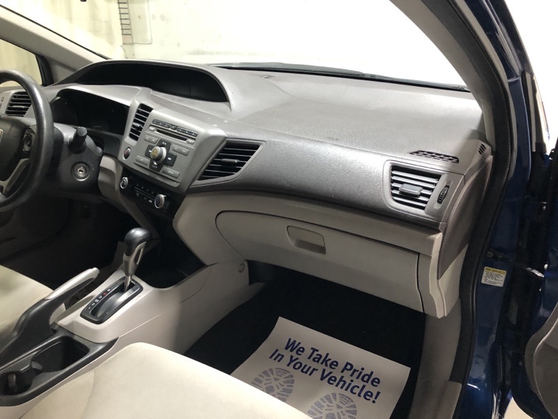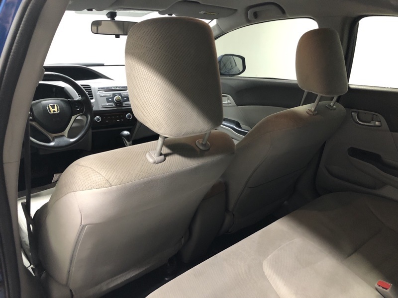 Clean CARFAX. Dyno Blue Pearl 2012 Honda Civic LX FWD 5-Speed Automatic 1.8L I4 SOHC 16V i-VTEC 28/39 City/Highway MPG