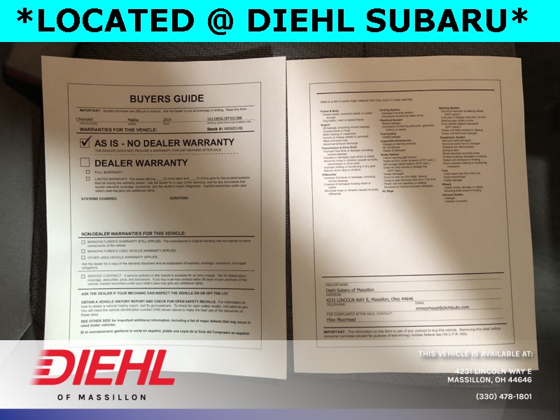 Jet Black/Titanium Cloth, Preferred Equipment Group 1LS. Recent Arrival! 2014 Chevrolet Malibu LS 1LS CARFAX One-Owner.