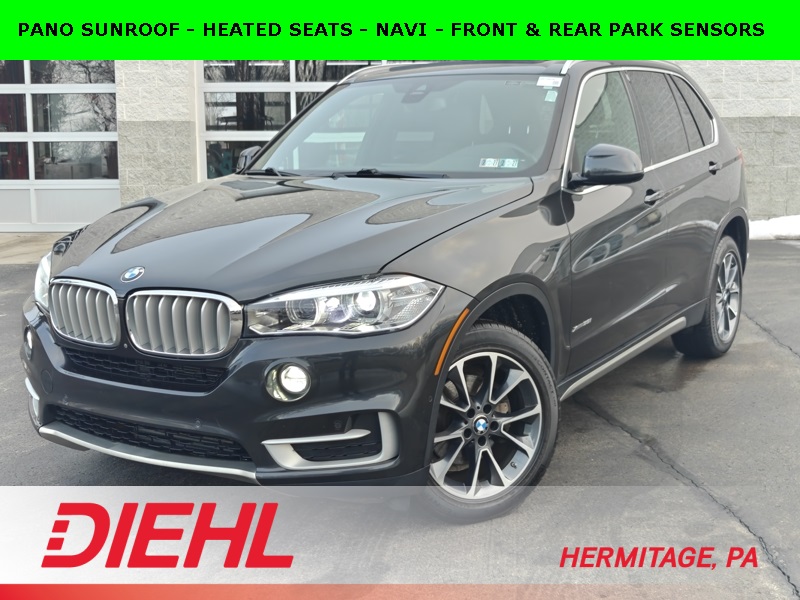 **ALL WHEEL DRIVE**, **HEATED SEATS**, **BLUETOOTH**, **NAVIGATION**, **BACKUP CAMERA**, **PANO SUNROOF**, **POWER LIFTGATE**, X5 xDrive35i, Dark Graphite, Black Artificial Leather, 4-Wheel Disc Brakes, 4-Zone Automatic Climate Control, ABS brakes, Automatic temperature control, Comfort Access Keyless Entry, Delay-off headlights, Emergency communication system: BMW Assist eCall, Exterior Parking Camera Rear, Front dual zone A/C, Fully automatic headlights, Head restraints memory, Head-Up Display, High intensity discharge headlights: Bi-xenon, Low tire pressure warning, Lumbar Support, Memory seat, Navigation System, Parking Assistant, Power driver seat, Power moonroof, Steering wheel mounted A/C controls, Steering wheel mounted audio controls, Tilt steering wheel, Trip computer.