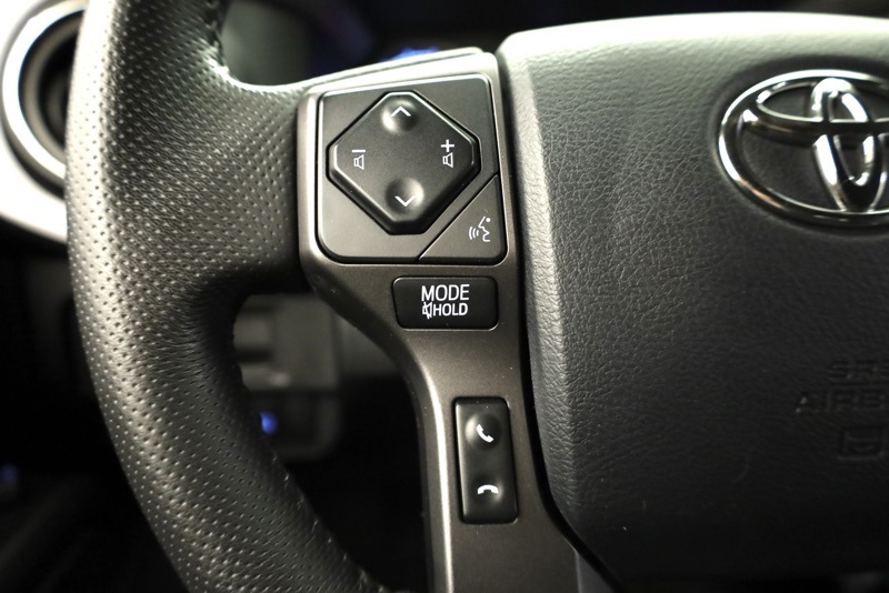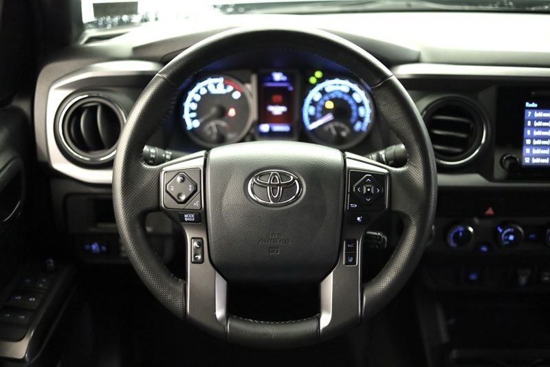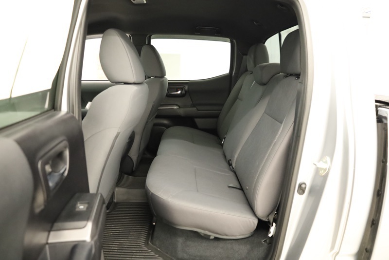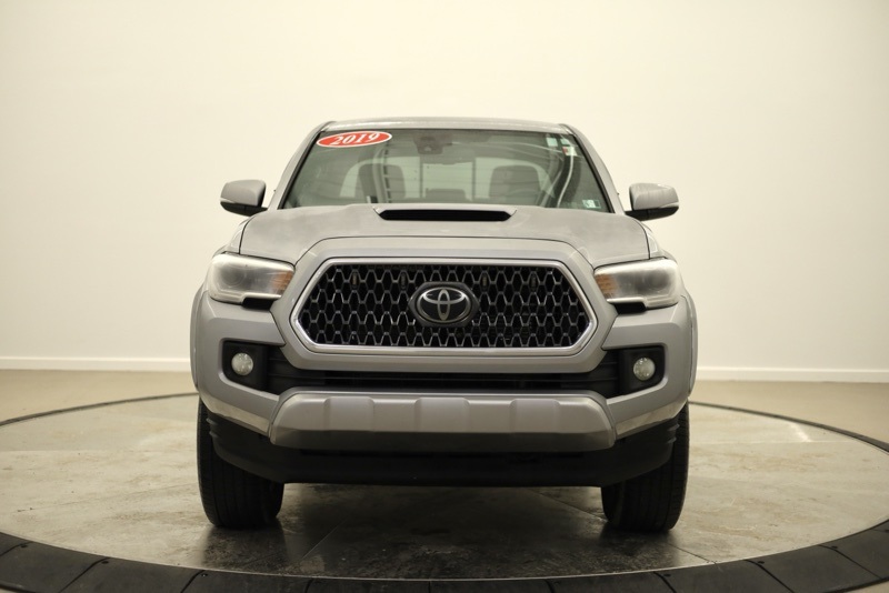 **BLUETOOTH HANDS FREE PHONE**, **BACK-UP CAMERA**, **KEYLESS ENTRY**, **ADAPTIVE CRUISE CONTROL**, **PRE COLLISION SYSTEM**, **LANE KEEP ASSIST**, **POWER SLIDING REAR WINDOW**, **AUTO HIGH BEAMS**, **17" MACHINED ALLOY WHEEL**, **FACTORY NAVIGATION**, **7" TOUCHSCREEN RADIO**, 4WD, 120V/400W Deck Mounted AC Power, 6 Speakers, ABS brakes, Active Cruise Control, Air Conditioning, Alloy wheels, AM/FM radio: SiriusXM, Anti-whiplash front head restraints, Auto High-beam Headlights, Auto-Dimming Inside Rear-View Mirror w/Compass, Auto-dimming Rear-View mirror, Axle Ratio: 3.91, Brake assist, Bumpers: body-color, CD player, Color-Keyed Overfenders, Driver door bin, Dual front impact airbags, Dual front side impact airbags, Electronic Stability Control, Engine Immobilizer, Entune App Suite, Exterior Parking Camera Rear, Fabric Seat Trim (FD), Front anti-roll bar, Front Bucket Seats, Front Center Armrest, Front fog lights, Front reading lights, Front wheel independent suspension, Illuminated entry, Knee airbag, Leather Shift Knob, LED Daytime Running Lamps, Low tire pressure warning, Occupant sensing airbag, Outside temperature display, Overhead airbag, Overhead console, Panic alarm, Passenger door bin, Power door mirrors, Power Sliding Rear Window w/Privacy Glass, Power steering, Power windows, Radio: Entune Premium w/AM/FM/CD/Nav/App Suite, Rear step bumper, Remote keyless entry, Remote Keyless Entry System, Security system, Smart Key w/Push Button Start, Speed control, Speed-sensing steering, Split folding rear seat, Steering wheel mounted audio controls, Tachometer, Telescoping steering wheel, Tilt steering wheel, Traction control, TRD Sport Package (PY), Trip computer, Turn signal indicator mirrors, Variable Intermittent Wipers, Variably intermittent wipers, Wheels: 17" x 7.5" Machined Alloy, Wide Angle Front Fog Lamps. Clean CARFAX. Silver 2019 Toyota Tacoma TRD Sport V6 4WD 6-Speed Automatic 3.5L V6 PDI DOHC 24V LEV3-ULEV70 278hp