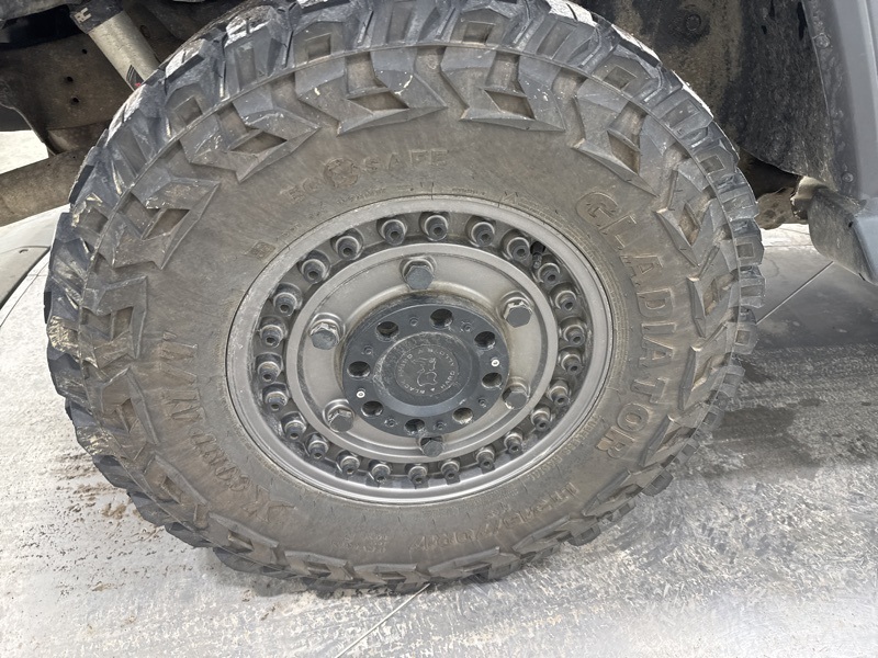 - Spare tire mounted on the exterior of the vehicle