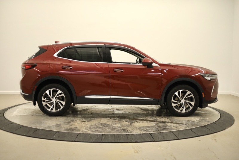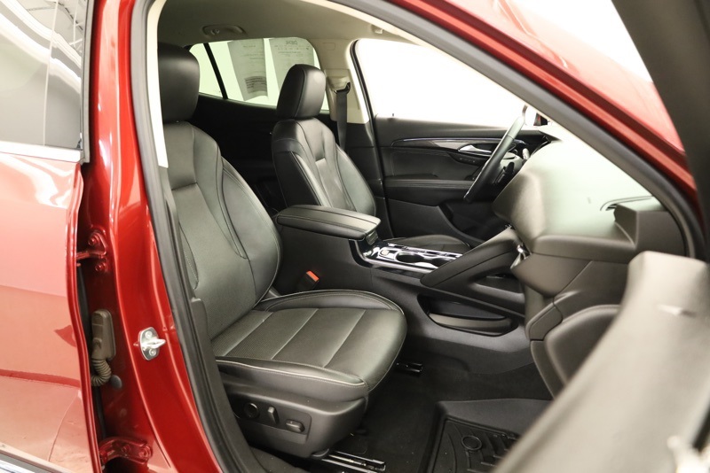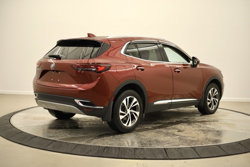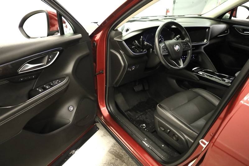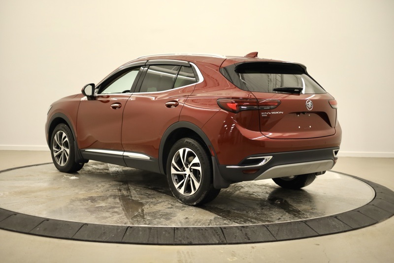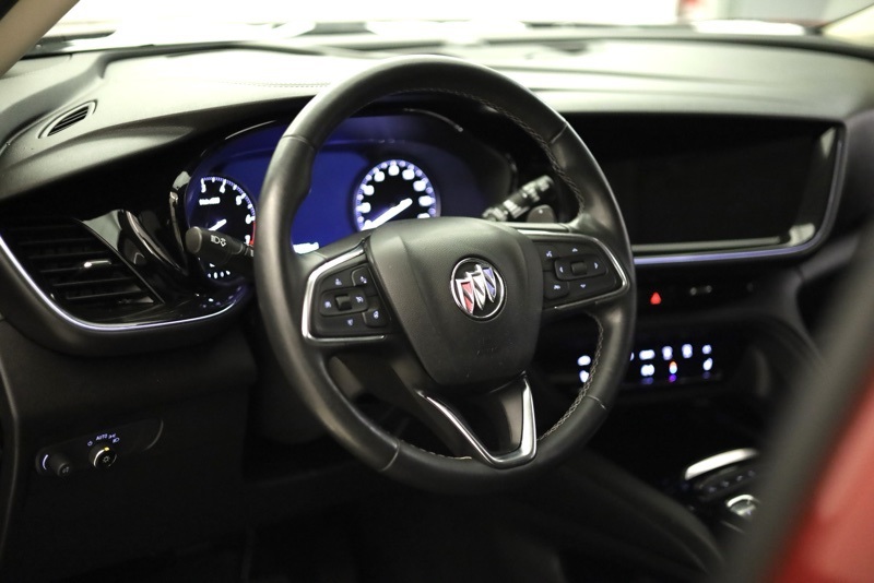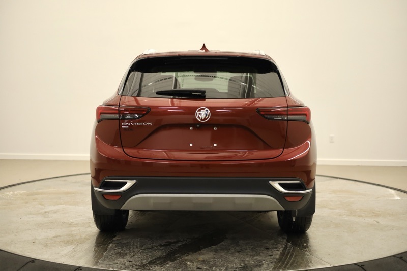 **ALL WHEEL DRIVE**, **BLUETOOTH HANDS FREE PHONE**, **LEATHER**, **BACK-UP CAMERA**, **APPLE CARPLAY / ANDROID AUTO**, **HEATED STEERING WHEEL**, **FORWARD COLLISION WARNING**, **POWER DRIVER SEAT**, **10" TOUCHSCREEN RADIO**, **HEATED FRONT SEATS**, **POWER LIFTGATE**, **FACTORY REMOTE START**, 18" Machined Aluminum Wheels, 3.47 Final Drive Axle Ratio, 4-Wheel Disc Brakes, 7 Speakers, 7-Speaker Audio System Feature w/Amplifier, 8-Way Power Driver Seat Adjuster, ABS brakes, Air Conditioning, Alloy wheels, AM/FM radio: SiriusXM, Apple CarPlay/Android Auto, Auto High-beam Headlights, Auto-dimming door mirrors, Auto-dimming Rear-View mirror, Automatic temperature control, Brake assist, Bumpers: body-color, Compass, Delay-off headlights, Driver 4-Way Power Lumbar Seat Adjuster, Driver door bin, Driver vanity mirror, Dual front impact airbags, Dual front side impact airbags, Electronic Stability Control, Emergency communication system: OnStar and Buick connected services capable, Four wheel independent suspension, Front anti-roll bar, Front Bucket Seats, Front Center Armrest, Front dual zone A/C, Front Passenger 4-Way Power Lumbar Seat Adjuster, Front Passenger 8-Way Power Seat Adjuster, Front reading lights, Fully automatic headlights, Heated door mirrors, Heated Driver & Front Passenger Seats, Heated front seats, Heated steering wheel, Illuminated entry, Knee airbag, Leather Shift Knob, Low tire pressure warning, Memory seat, Occupant sensing airbag, Outside temperature display, Overhead airbag, Overhead console, Panic alarm, Passenger door bin, Passenger vanity mirror, Perforated Leather-Appointed Seat Trim, Power door mirrors, Power driver seat, Power Liftgate, Power passenger seat, Power steering, Power windows, Preferred Equipment Group 1SL, Radio data system, Radio: Buick Infotainment System AM/FM Stereo, Rear anti-roll bar, Rear reading lights, Rear seat center armrest, Rear window defroster, Rear window wiper, Remote keyless entry, Roof rack: rails only, Security system, SiriusXM Radio, Speed control, Speed-sensing steering, Split folding rear seat, Spoiler, Steering wheel mounted audio controls, Tachometer, Telescoping steering wheel, Tilt steering wheel, Traction control, Trip computer, USB Charging-Only Ports, USB Ports, Variably intermittent wipers, Wireless Apple CarPlay/Wireless Android Auto. Cinnabar Metallic 2021 Buick Envision Essence AWD 9-Speed Automatic 2.0L Turbocharged