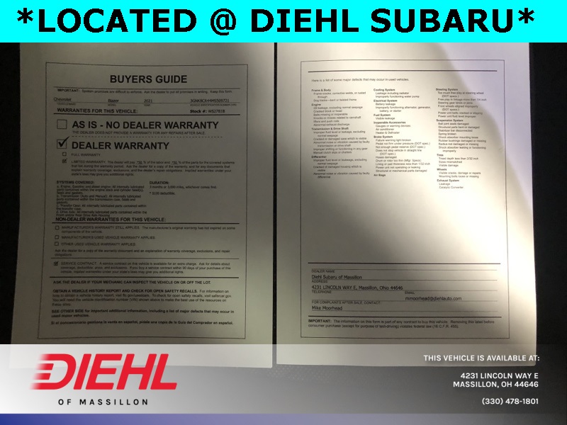 Diehl Automotive utilizes a system that generates market value pricing automatically for new and pre-owned vehicles and may cause errors, inaccuracies, or omissions. Some aftermarket additions or accessories may not be displayed properly. For accuracy, please contact the dealer for real-time, accurate pricing. A documentation fee of $490 applies and is not included in the pricing. Tax, title, and tags are also not included and must be paid by the purchaser. Some prices may include manufacturer-to-dealer offers that are not compatible with manufacturer special finance programs and/or lease offers. While great effort is made to ensure the accuracy of the information on this site, errors do occur, so please verify information with a customer service representative. This is easily done by calling us or by visiting us at the dealership.