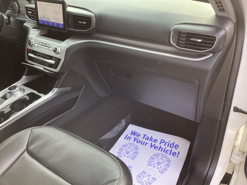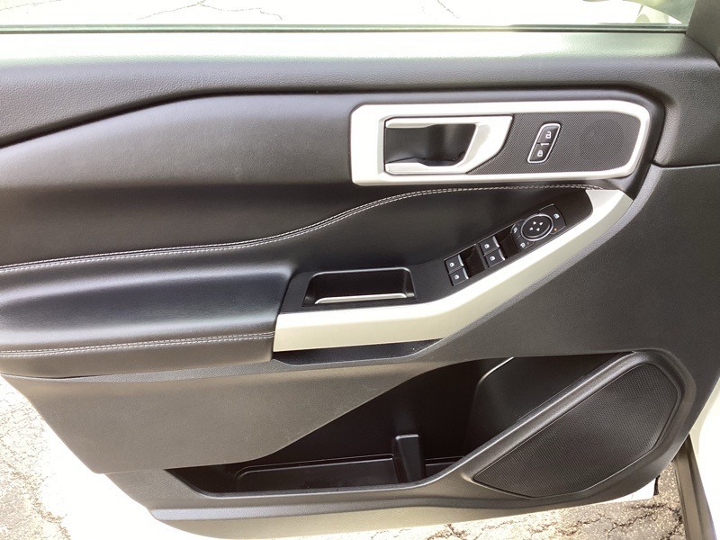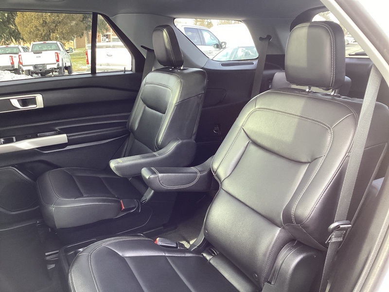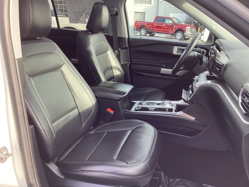 4WD, 1st Row Heated Seats, 3.58 Non-Limited-Slip Rear Axle Ratio, 3rd row seats: bench, 4-Wheel Disc Brakes, 6 Speakers, ABS brakes, Acoustic-Laminated Front Side Windows, ActiveX Captain's Chairs, Air Conditioning, Alloy wheels, AM/FM radio: SiriusXM, AM/FM Stereo, Auto High-beam Headlights, Automatic temperature control, Brake assist, Bumpers: body-color, Cargo Area Management System, Class III Trailer Tow Package, Compass, Delay-off headlights, Driver door bin, Driver vanity mirror, Dual front impact airbags, Dual front side impact airbags, Electronic Stability Control, Emergency communication system: SYNC 3 911 Assist, Equipment Group 202A, Evasive Steering Assist, Exterior Parking Camera Rear, Ford Co-Pilot360 Assist+, FordPass Connect, Four wheel independent suspension, Front & Second Row Floor Liners (16A), Front anti-roll bar, Front Bucket Seats, Front Center Armrest, Front dual zone A/C, Front reading lights, Fully automatic headlights, Heated door mirrors, Heated front seats, Heated Steering Wheel, Illuminated entry, Intelligent Adaptive Cruise Control, Knee airbag, Leather steering wheel, LED Fog Lamps, Low tire pressure warning, Occupant sensing airbag, Outside temperature display, Overhead airbag, Overhead console, Panic alarm, Passenger door bin, Passenger vanity mirror, Power door mirrors, Power driver seat, Power Liftgate, Power passenger seat, Power steering, Power windows, Rear air conditioning, Rear anti-roll bar, Rear reading lights, Rear window defroster, Rear window wiper, Remote keyless entry, Remote Start System, Roof rack: rails only, Security system, SelectShift Capability w/Paddle Shifters, Speed control, Speed Sign Recognition, Speed-sensing steering, Speed-Sensitive Wipers, Split folding rear seat, Spoiler, Steering wheel mounted audio controls, SYNC 3 Communications & Entertainment System, SYNC 3/Apple CarPlay/Android Auto, Tachometer, Telescoping steering wheel, Tilt steering wheel, Traction control, Trip computer, Twin Panel Moonroof, Unique Cloth Captain's Chairs, Variably intermittent wipers, Voice-Activated Touchscreen Navigation System, Wheels: 18" 5-Spoke Sparkle Silver-Painted Alum. White 2021 Ford Explorer XLT 4WD 10-Speed Automatic 2.3L EcoBoost I-4