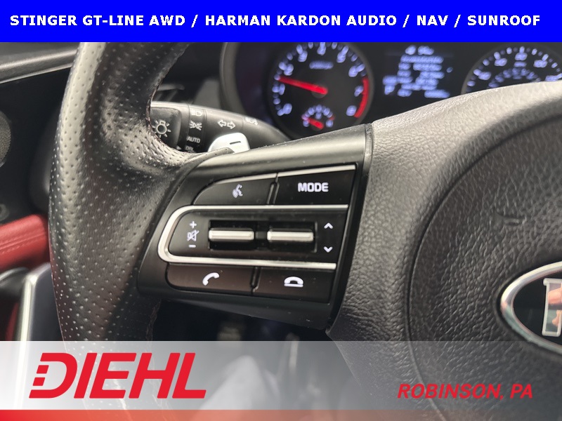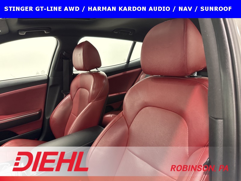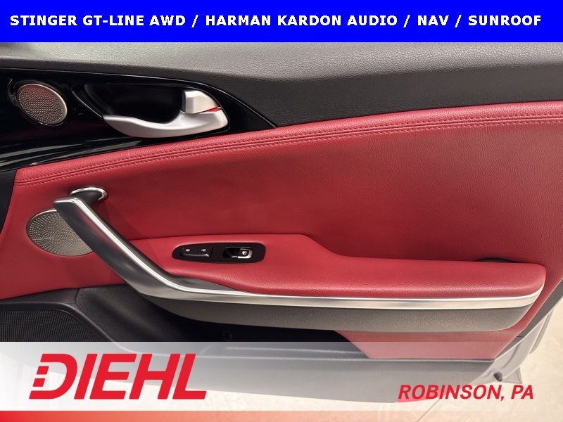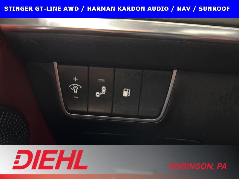 Safety and tech are handled exactly how you’d want in a performance-leaning AWD sedan. Blind-spot collision warning, rear cross-traffic alert, parking distance warning, a rearview camera with dynamic guidelines, and smart key push-button start all work quietly in the background to make everyday driving easier. The all-wheel-drive system adds confidence year-round, especially in bad weather, without dulling the fun factor that makes the Stinger what it is.