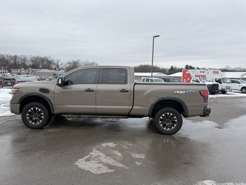 **LEATHER**, **HEATED AND COOLED FRONT SEATS**, **PANORAMIC MOONROOF**, **FACTORY REMOTE START**, **MEMORY DRIVER SEAT**, **HEATED STEERING WHEEL**, **CLEAN CARFAX**, **PRO-4X**, **FRONT AND REAR PARKING SONAR**, **PRE COLLISION SYSTEM**, **BLIND SPOT DETECTION**, **AUTO HIGH BEAMS**, **APPLE CARPLAY / ANDROID AUTO**, **9" TOUCHSCREEN RADIO**, **FENDER PREMIUM SOUND**. Recent Arrival! Clean CARFAX. Baja Storm 2021 Nissan Titan XD PRO-4X 4WD 9-Speed Automatic 5.6L V8 DOHC 32V Federal 400hp