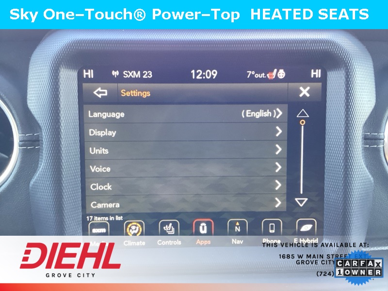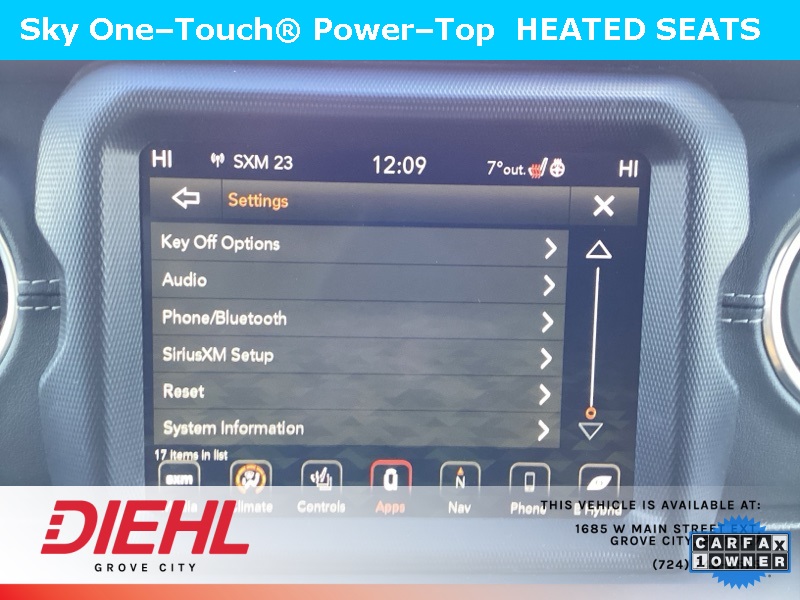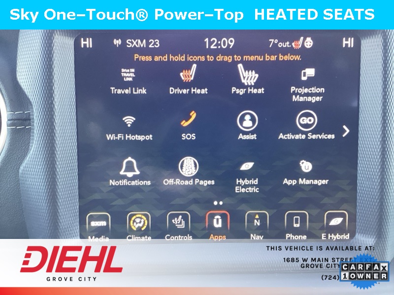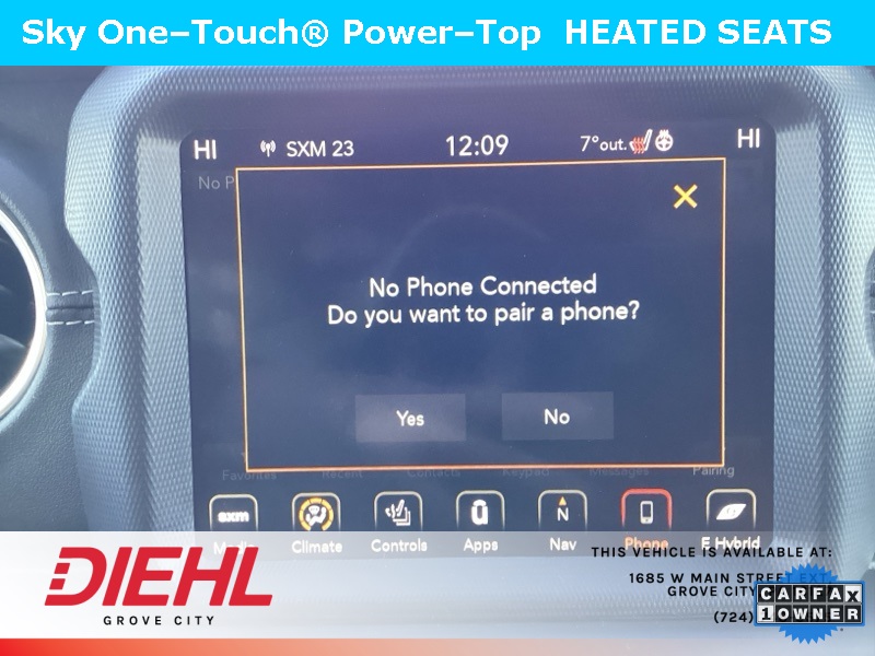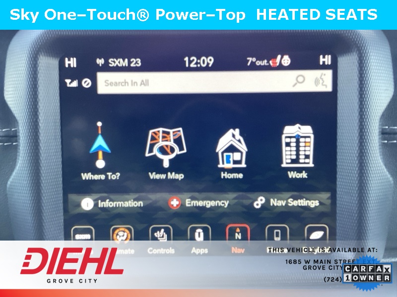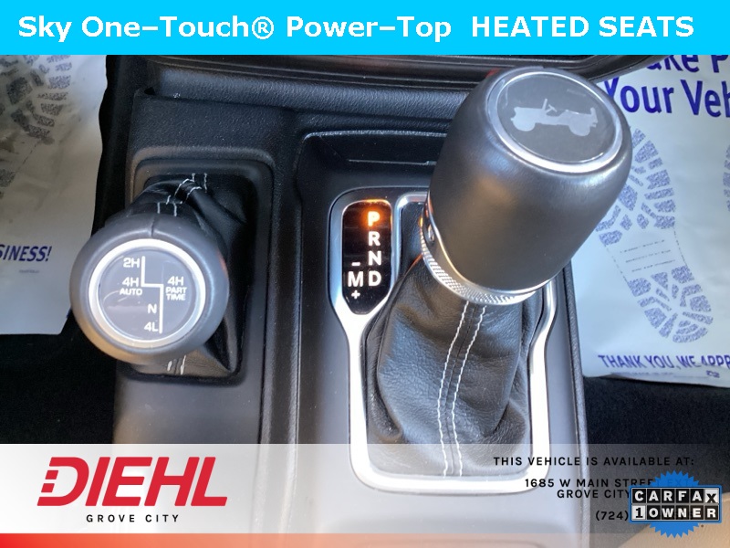 **NAVIGATION/NAV/GPS**, *BACK UP CAMERA*, **4X4**, SKY 1 TOUCH ROOF, 2.0L I4 DOHC, 4-Wheel Disc Brakes, ABS brakes, Cold Weather Group, Dual front impact airbags, Dual front side impact airbags, Emergency communication system: SiriusXM Guardian, Front anti-roll bar, Heated Front Seats, Heated Steering Wheel, Integrated roll-over protection, Low tire pressure warning, Navigation System, Occupant sensing airbag, Power Top Quarter Window Storage Bag, Quick Order Package 29P, Rear anti-roll bar, Remote Start System, Removable Rear Quarter Windows, Sky 1-Touch Power Top. CARFAX One-Owner. Clean CARFAX. Priced below KBB Fair Purchase Price!