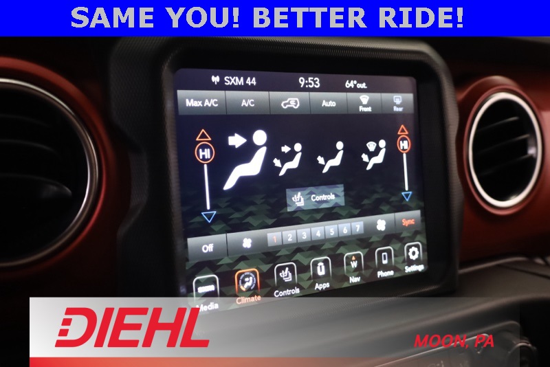 What really wins you over is how it balances that rugged confidence with everyday ease. Heated front seats and a heated steering wheel from the Cold Weather Group make winter mornings feel downright civilized. The LED Lighting Group brightens the road with crisp DRLs, fog lamps, and headlights that cut through dark backroads like they owe you money. Corning Gorilla Glass helps shrug off stray stones, and the body color Rubicon highline flares give it a refined, factory-custom look.