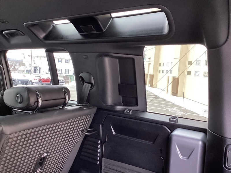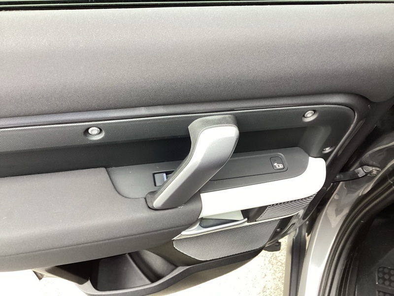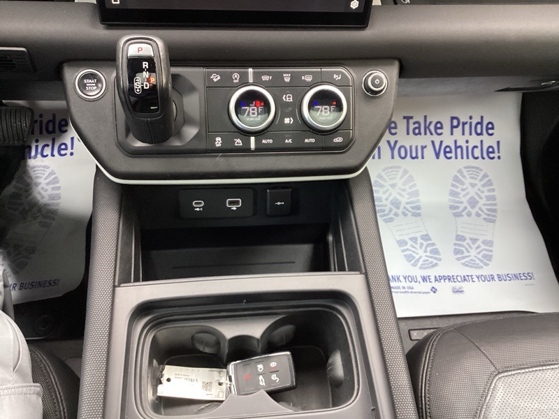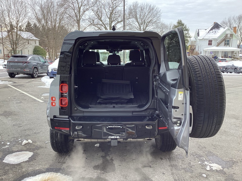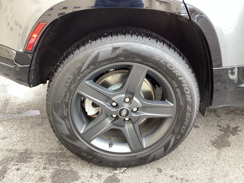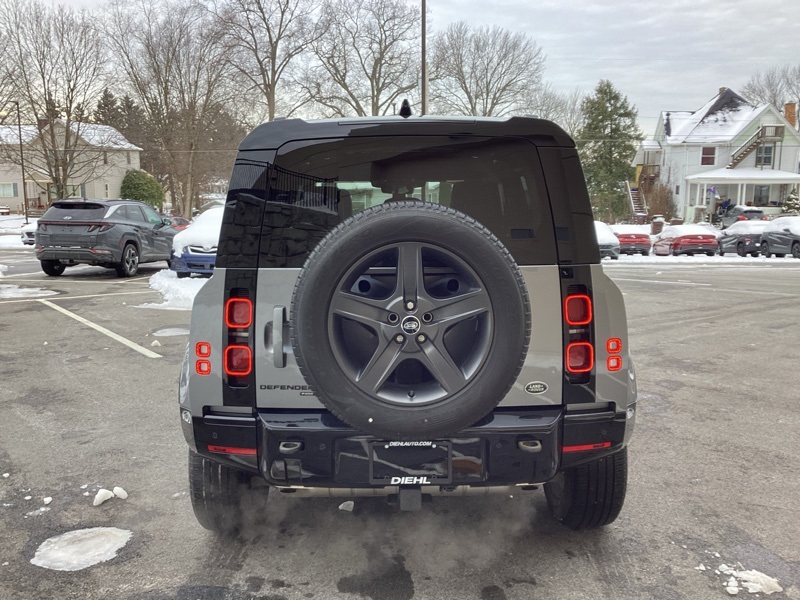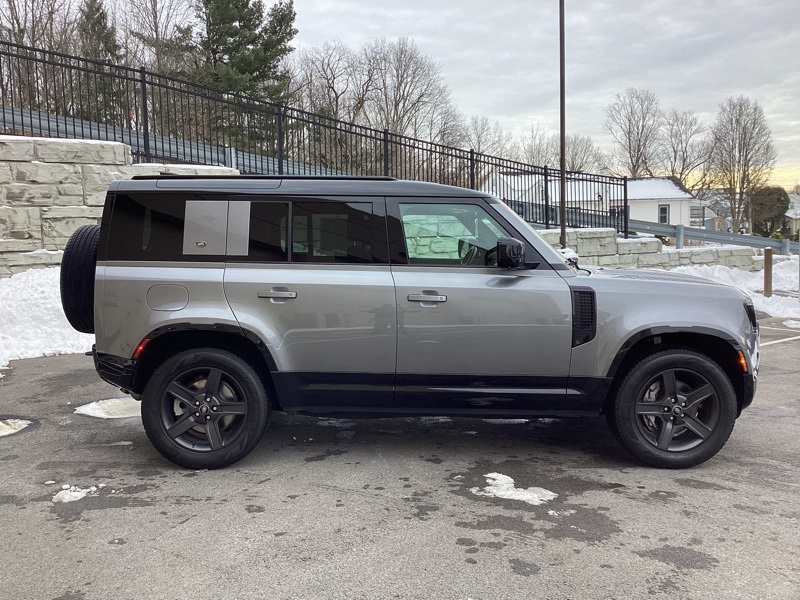 14-Way Heated Electric Memory Seats, 15 Speakers, 3.55 Axle Ratio, 4-Wheel Disc Brakes, ABS brakes, Air Conditioning, Alloy wheels, AM/FM radio: SiriusXM, Apple CarPlay & Android Auto, Auto High-beam Headlights, Auto tilt-away steering wheel, Auto-dimming Rear-View mirror, Automatic temperature control, Brake assist, Bumpers: body-color, Compass, Delay-off headlights, Driver door bin, Driver vanity mirror, Dual front impact airbags, Dual front side impact airbags, Electronic Stability Control, Four wheel independent suspension, Front anti-roll bar, Front Bucket Seats, Front Center Armrest, Front dual zone A/C, Front fog lights, Front reading lights, Fully automatic headlights, Garage door transmitter: HomeLink, Grained Leather Seat Trim, Heated door mirrors, Heated front seats, Illuminated entry, Leather Shift Knob, Leather steering wheel, Low tire pressure warning, Memory seat, Navigation system: Connected Navigation PIVI Pro, Occupant sensing airbag, Outside temperature display, Overhead airbag, Overhead console, Panic alarm, Passenger door bin, Passenger vanity mirror, Power door mirrors, Power driver seat, Power moonroof, Power passenger seat, Power steering, Power windows, Radio data system, Radio: 825W 15 Speaker Meridian Surround Sound Sys, Rain sensing wipers, Rear anti-roll bar, Rear fog lights, Rear reading lights, Rear seat center armrest, Rear window defroster, Rear window wiper, Remote keyless entry, Roof rack: rails only, Security system, Speed control, Speed-sensing steering, Speed-Sensitive Wipers, Split folding rear seat, Steering wheel memory, Steering wheel mounted audio controls, Tachometer, Telescoping steering wheel, Tilt steering wheel, Traction control, Trip computer, Variably intermittent wipers, Weather band radio, Wheels: 20" Satin Dark Grey Style 5094. Carpathian Gray Premium Metallic 2022 Land Rover Defender 110 X-Dynamic SE 4WD 8-Speed Automatic 3.0L I6