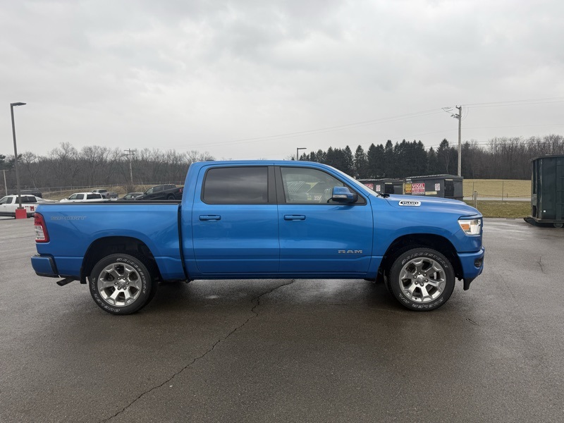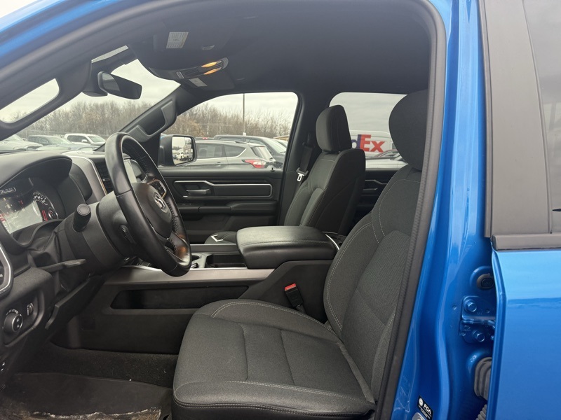**SPORT APPEARANCE PACKAGE**, **FACTORY SPRAY IN LINER**, **BIGHORN LEVEL 2**, **APPLE CARPLAY / ANDROID AUTO**, **HEATED FRONT SEATS**, **HEATED STEERING WHEEL**, **FRONT AND REAR PARKING SONAR**, **FACTORY REMOTE START**, **ALPINE PREMIUM SOUND**, **8.4" TOUCHSCREN RADIO**, **20" CHROME CLAD WHEELS**, 115V Auxiliary Power Outlet, 115V Auxiliary Rear Power Outlet, 2nd Row In Floor Storage Bins, 3 Rear Seat Head Restraints, 4 Way Front Headrests, 400W Inverter, 4G LTE Wi-Fi Hot Spot, 8.4" Touchscreen Display, Air Conditioning ATC w/Dual Zone Control, All Plant-Installed Decals, All R1 High Radios, All Radio Equipped Vehicles, Apple CarPlay, Auto-Dimming Exterior Driver Mirror, Auto-Dimming Rear-View Mirror, Bed Utility Group, Big Horn Badge, Big Horn Level 2 Equipment Group, Black Exterior Mirrors, Black Interior Accents, Black Premium Power Mirrors, Bluetooth Handsfree Phone & Audio, Body Color Exterior Mirrors, Body Color Front Bumper, Body Color Premium Power Mirrors, Body Color Rear Bumper w/Step Pads, Bridgestone Brand Tires, Bucket Seats, Class IV Receiver Hitch, Cluster 7.0" TFT Color Display, Connected Travel & Traffic Services, Connectivity - US/Canada, Convex Wide-Angle Mirror Insert, Delete LED Lamp - Floor Console Bin, Deluxe Cloth Bucket Seats, Disassociated Touchscreen Display, Exterior Mirrors Courtesy Lamps, Exterior Mirrors w/Heating Element, Exterior Mirrors w/Supplemental Signals, For Details, Visit DriveUconnect.com, Front Seat Back Map Pockets, Full Length Floor Console, Global Telematics Box Module (TBM), Glove Box Lamp, Google Android Auto, GPS Antenna Input, GPS Navigation, HD Radio, Heated Front Seats, Heated Steering Wheel, Integrated Center Stack Radio, Integrated Voice Command w/Bluetooth, Manual Adjust 4-Way Front Passenger Seat, Media Hub w/2 Charge Only USBs, MOPAR 4 Adjustable Cargo Tie-Down Hooks, MOPAR Deployable Bed Step, MOPAR Spray In Bedliner, ParkSense Front/Rear Park Assist w/Stop, Pick-Up Box Lighting, Power 2-Way Driver Lumbar Adjust, Power 8-Way Driver Seat, Power Adjustable Pedals, Power-Folding Mirrors, Quick Order Package 23Z Big Horn, Radio: Uconnect 5 Nav w/8.4" Display, Rear 60/40 Folding Seat, Rear Center Armrest, Rear Dome w/On/Off Switch Lamp, Rear Power Sliding Window, Rear Window Defroster, Remote Start System, Security Alarm, SiriusXM Radio Service, SiriusXM Satellite Radio, SiriusXM w/360L, Sport Appearance Package, Sport Decal, Sun Visors w/Illuminated Vanity Mirrors, Universal Garage Door Opener, USB Host Flip. CARFAX One-Owner. Hydro Blue Pearlcoat 2022 Ram 1500 Big Horn/Lone Star 4WD 8-Speed Automatic 3.6L V6 24V VVT