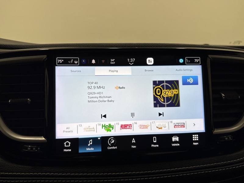 Inside, this Pacifica feels more like a luxury SUV than a van. The cabin features heated and ventilated front seats, a heated steering wheel, power-adjustable seating, and premium materials throughout, paired with Chrysler’s Uconnect system with a large touchscreen, navigation, Apple CarPlay, and Android Auto. Second-row Easy-Slide captain’s chairs and a spacious third row make passenger access effortless, while advanced noise cancellation keeps the ride calm and refined.