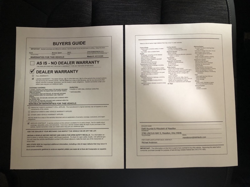 *Confirm any warranty information with dealer before purchase.Roadside warranty
