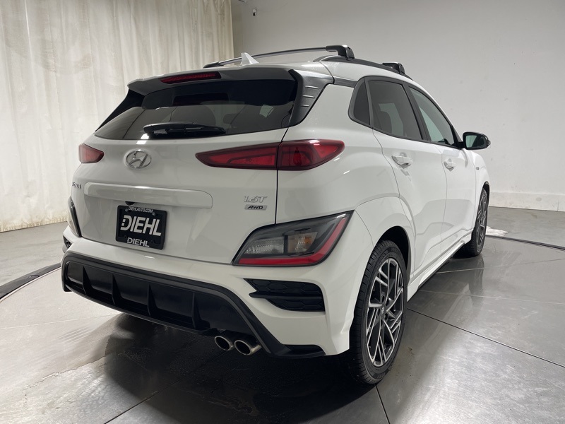 Odometer is 5019 miles below market average! Clean CARFAX. CARFAX One-Owner. Lunar White 2023 Hyundai Kona N Line AWD Shiftronic I4 27/32 City/Highway MPG