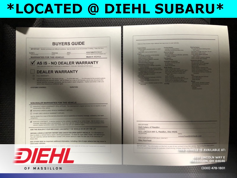 EyeSight System, High Grade Combination Meter w/Color LCD Display, Overhead Console Shower Light, Rear Seat Reminder, Standard Model w/CVT. Certified. 2023 Subaru Impreza Base CARFAX One-Owner. Clean CARFAX.
