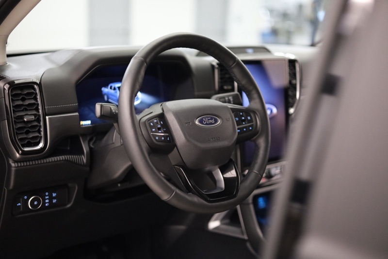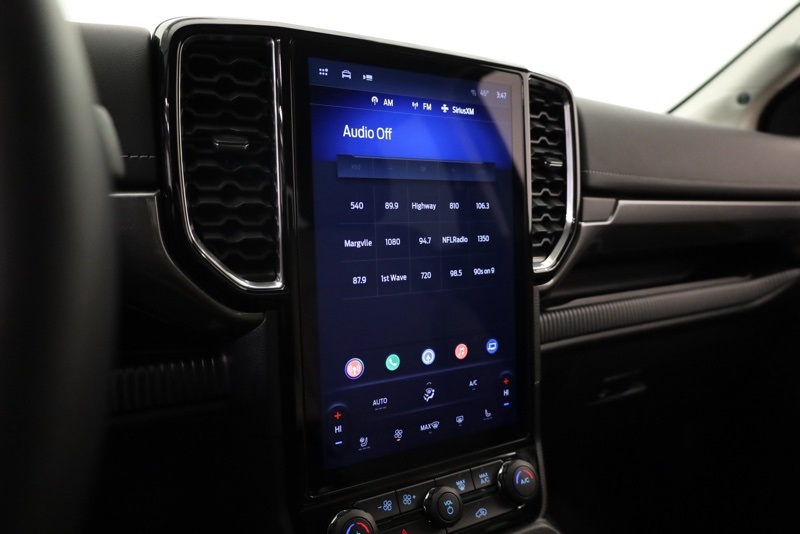**BLUETOOTH HANDS FREE PHONE**, **LEATHER**, **BACK-UP CAMERA**, **B&O PREMIUM SOUND**, **MEMORY DRIVER SEAT**, **HEATED STEERING WHEEL**, **18" MACHINED WHEELS**, **HEATED FRONT SEATS**, **12" TOUCHSCREEN RADIO**, **PRE COLLISION SYSTEM**, **LANE KEEP ASSIST**, **FACTORY REMOTE START**, **BLIND SPOT DETECTION**, 4WD, 10 Speakers, 3.73 Axle Ratio, 4-Wheel Disc Brakes, ABS brakes, Air Conditioning, Alloy wheels, AM/FM radio: SiriusXM, Auto High-beam Headlights, Auto-dimming Rear-View mirror, Automatic temperature control, Brake assist, Compass, Delay-off headlights, Driver door bin, Driver vanity mirror, Dual front impact airbags, Dual front side impact airbags, Electronic Stability Control, Emergency communication system: SYNC 4 911 Assist, Equipment Group 500A Standard, Exterior Parking Camera Rear, First Aid Kit, Front anti-roll bar, Front Bucket Seats, Front Center Armrest, Front dual zone A/C, Front fog lights, Front reading lights, Front wheel independent suspension, Fully automatic headlights, Garage door transmitter, Gray Painted Center Bar & Grille Surround, Gray Painted Front Fascia & Rear Bumper, Gray Painted Wheel Lip Molding, Heated door mirrors, Heated front seats, Heated steering wheel, Illuminated entry, Leather Shift Knob, Leather steering wheel, Leather-Trimmed Front Heated Bucket Seats, Low tire pressure warning, Memory seat, Navigation system: Connected Navigation, Occupant sensing airbag, Outside temperature display, Overhead airbag, Overhead console, Panic alarm, Passenger door bin, Passenger vanity mirror, Power door mirrors, Power driver seat, Power passenger seat, Power steering, Power windows, Radio: B&O Sound System by Bang & Olufsen, Rain sensing wipers, Rear reading lights, Rear seat center armrest, Rear step bumper, Rear window defroster, Remote keyless entry, Road Side Assistance Kit, Security system, SiriusXM Satellite Radio, Speed control, Speed-sensing steering, Sport Appearance Package, Sport Box Decal, Steering wheel mounted audio controls, SYNC 4A w/Connected Built-In Navigation, Telescoping steering wheel, Tilt steering wheel, Traction control, Trip computer, Turn signal indicator mirrors, Variably intermittent wipers, Voltmeter, Wheels: 18" Machined Aluminum w/Dark Pockets. CARFAX One-Owner. Clean CARFAX. Shadow Black 2024 Ford Ranger Lariat 4WD 10-Speed Automatic EcoBoost 2.3L I4 GTDi DOHC Turbocharged VCT