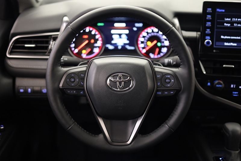 **BLUETOOTH HANDS FREE PHONE**, **LEATHER**, **BACK-UP CAMERA**, **JBL PREMIUM SOUND**, **HEATED FRONT SEATS**, **APPLE CARPLAY / ANDROID AUTO**, **DUAL ZONE CLIMATE CONTROL**, **PRE COLLISION SYSTEM**, **ADAPTIVE CRUISE CONTROL**, **SMART KEY**, **HEADS UP DISPLAY**, **PANORAMIC MOONROOF**, **3.5L V6!!!**, **LANE KEEP ASSIST**, **HEATED STEERING WHEEL**, Toyota Certified, Black w/Perforated Leather Seat Trim, 4-Wheel Disc Brakes, 9 Speakers, ABS brakes, Air Conditioning, Alloy wheels, AM/FM radio: SiriusXM, Apple CarPlay/Android Auto, Auto High-beam Headlights, Auto-dimming Rear-View mirror, Automatic temperature control, Blackout Package (TMS), Brake assist, Bumpers: body-color, Cold Weather Package, Compass, Delay-off headlights, Driver door bin, Driver vanity mirror, Dual front impact airbags, Dual front side impact airbags, Electronic Stability Control, Emergency communication system: Safety Connect (1-year trial), Exterior Parking Camera Rear, Four wheel independent suspension, Front anti-roll bar, Front Bucket Seats, Front Center Armrest, Front dual zone A/C, Front reading lights, Fully automatic headlights, Garage door transmitter: HomeLink, Heads-Up Display, Heated door mirrors, Heated front seats, Heated Steering Wheel, Illuminated entry, Knee airbag, Leather steering wheel, Low tire pressure warning, Multi-Stage Heated Front Bucket Seats, Occupant sensing airbag, Outside temperature display, Overhead airbag, Overhead console, Panic alarm, Passenger door bin, Passenger vanity mirror, Perforated Leather Seat Trim, Power door mirrors, Power driver seat, Power moonroof, Power passenger seat, Power steering, Power windows, Radio data system, Radio: Audio Plus w/JBL, Radio: Premium Audio w/JBL, Rear anti-roll bar, Rear reading lights, Rear seat center armrest, Rear side impact airbag, Rear window defroster, Remote keyless entry, Security system, Speed control, Speed-sensing steering, Split folding rear seat, Spoiler, Steering wheel mounted audio controls, Tachometer, Telescoping steering wheel, Tilt steering wheel, Traction control, Trip computer, Turn signal indicator mirrors, Variably intermittent wipers, Wheels: 19" x 8J Alloy. CARFAX One-Owner. Clean CARFAX. Supersonic Red 2024 Toyota Camry XSE V6 FWD 8-Speed Automatic 3.5L V6 DOHC 24V