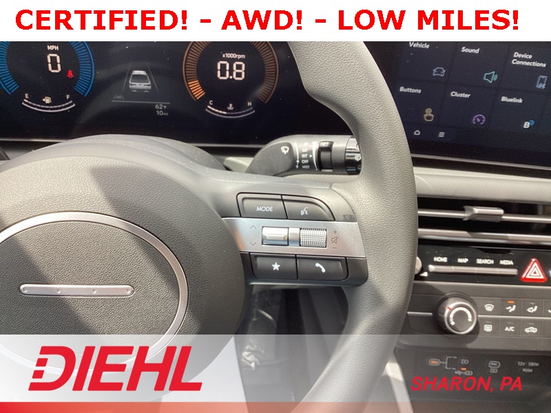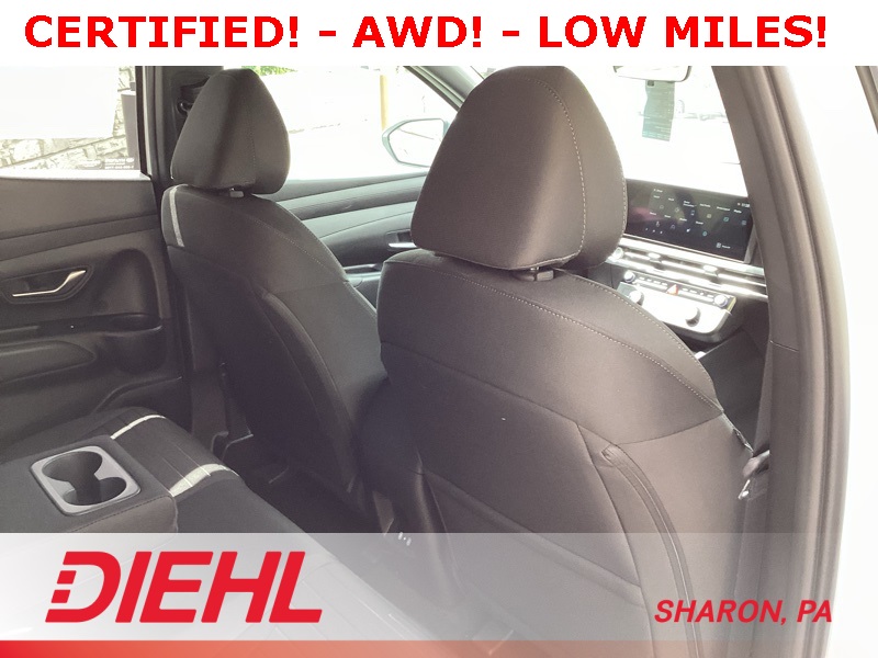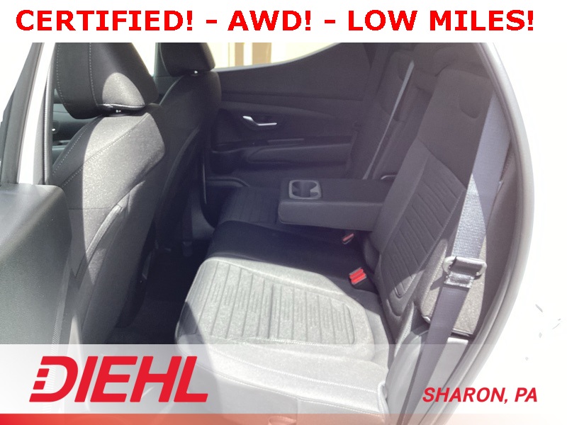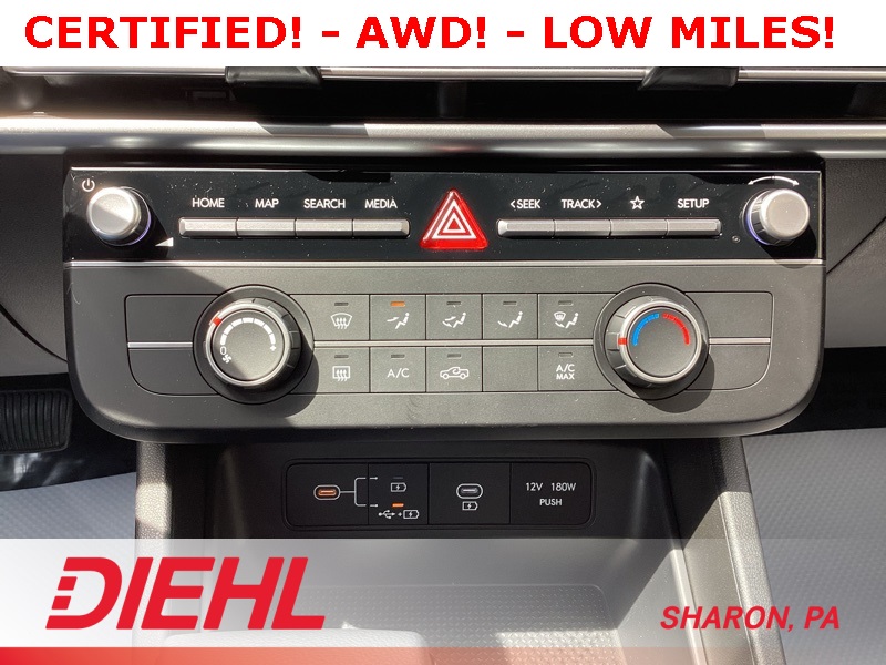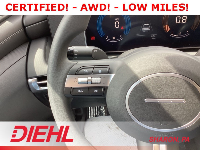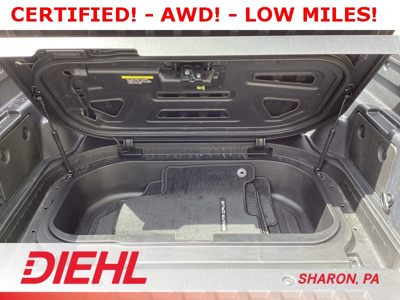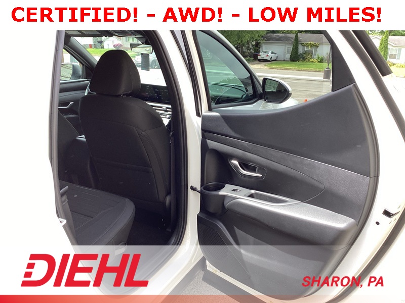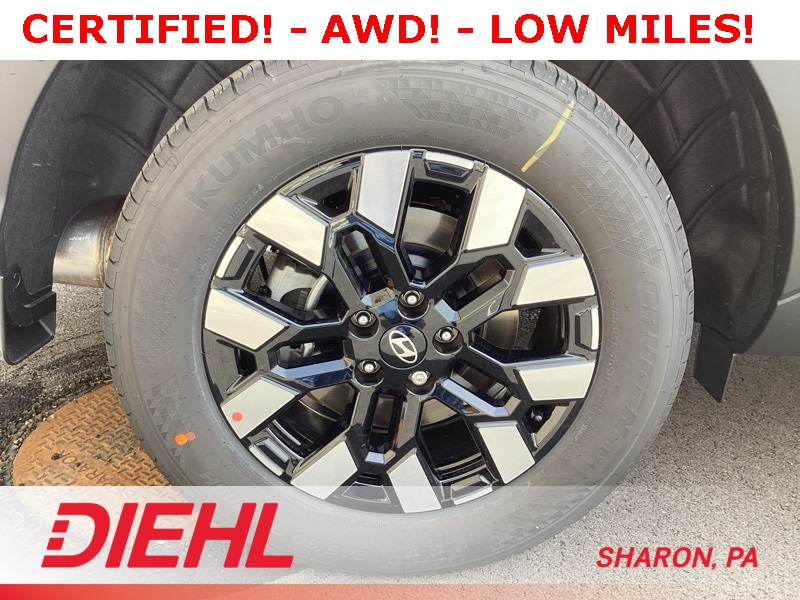 **ONE-OWNER**, **HEATED SEATS**, **BACKUP CAMERA**, **APPLE CAR PLAY**, **ANDROID AUTO**, **CERTIFIED PRE OWNED**, 18" x 7.5J Alloy Wheels, 4-Wheel Disc Brakes, 4.081 Axle Ratio, 6 Speakers, ABS brakes, Air Conditioning, Alloy wheels, AM/FM radio: SiriusXM, Apple CarPlay & Android Auto, Auto High-beam Headlights, Auto-leveling suspension, Bed Mat, Brake assist, Bumpers: body-color, Carpeted Floor Mats, Compass, Delay-off headlights, Driver door bin, Driver vanity mirror, Dual front impact airbags, Dual front side impact airbags, Electronic Stability Control, Emergency communication system: Bluelink+, Exterior Parking Camera Rear, First Aid Kit, Four wheel independent suspension, Front anti-roll bar, Front Bucket Seats, Front Center Armrest, Front reading lights, Fully automatic headlights, Illuminated entry, Low tire pressure warning, Mud Guards, Occupant sensing airbag, Option Group 01, Outside temperature display, Overhead airbag, Overhead console, Panic alarm, Passenger door bin, Passenger vanity mirror, Power door mirrors, Power steering, Power windows, Radio data system, Radio: AM/FM/HD Audio System, Rear anti-roll bar, Rear seat center armrest, Rear side impact airbag, Rear step bumper, Rear window defroster, Remote keyless entry, Security system, Speed control, Speed-sensing steering, Split folding rear seat, Spoiler, Stain & Odor Resistant Cloth Seat Trim, Steering wheel mounted audio controls, Tachometer, Telescoping steering wheel, Tilt steering wheel, Traction control, Trip computer, Variably intermittent wipers, Wheel Locks. Certified. Atlas White 2025 Hyundai Santa Cruz SE AWD 8-Speed Automatic with SHIFTRONIC 2.5L I4