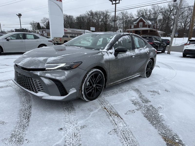 **TOYOTA CERTIFIED**, **HEATED FRONT SEATS**, **HEAVY METAL PREMIUM PAINT**, **PANORAMIC MOONROOF***, **TWO TONE BLACK ROOF**, **12.3" TOUCHSCREEN RADIO**, **12.3" DIGITAL GAUGE CLUSTER**, **SMART KEY**, **PRE COLLISION SYSTEM**, **ADAPTIVE CRUISE CONTROL**, **LANE KEEP ASSIST**, **BLIND SPOT DETECTION**, 2.5L 4-Cylinder 16V DOHC, Black w/Leather/Dinamica Microfiber Seat Trim, 4-Wheel Disc Brakes, 6 Speakers, ABS brakes, Active Cruise Control, Air Conditioning, Alloy wheels, AM/FM radio: SiriusXM, Auto High-beam Headlights, Automatic temperature control, Brake assist, Bumpers: body-color, Delay-off headlights, Dual front impact airbags, Dual front side impact airbags, Electronic Stability Control, Emergency communication system: Safety Connect (up to 10-year trial subscription), Exterior Parking Camera Rear, Four wheel independent suspension, Front anti-roll bar, Front dual zone A/C, Fully automatic headlights, Heated door mirrors, Heated Front Bucket Seats, Heated front seats, Illuminated entry, Knee airbag, Leather Seat Trim, Low tire pressure warning, Occupant sensing airbag, Overhead airbag, Panic alarm, Panoramic Glass Roof, Power door mirrors, Power driver seat, Power steering, Power windows, Radio data system, Radio: Toyota Audio Multimedia w/12.3" Touchscreen, Rear anti-roll bar, Rear side impact airbag, Rear window defroster, Remote keyless entry, Security system, Speed control, Speed-sensing steering, Spoiler, Steering wheel mounted audio controls, Traction control, Turn signal indicator mirrors. Recent Arrival! CARFAX One-Owner. Heavy Metal/Midnight Black Metallic 2025 Toyota Camry XSE AWD eCVT 2.5L 4-Cylinder 16V DOHC