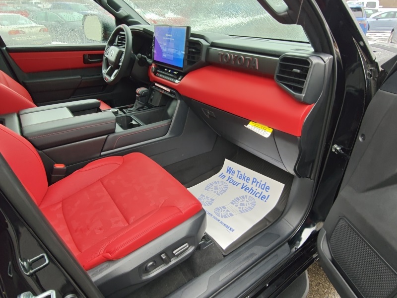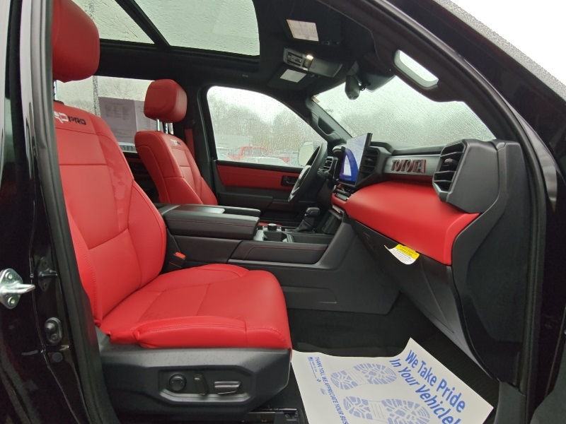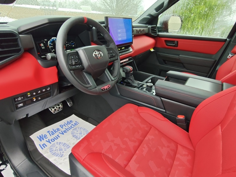 Recent Arrival! **ONE OWNER**, **CLEAN CARFAX**, **TOYOTA CERTIFIED**, **FOUR WHEEL DRIVE**, **HEATED SEATS**, **COOLED SEATS**, **ADAPTIVE CRUISE CONTRL**, **LANE KEEP ASSIST**, **BLIND SPOT DETECTION**, **FRONT CRASH DETECTION**, **BLUETOOTH**, **NAVIGATION**, **BACKUP CAMERA**, **PREMIUM WHEELS**, ** REMOTE START**, **PANO SUNROOF**, **360 SURROUND CAMERA**, **TOW PACKAGE**, **ANDROID AUTO**, **APPLE CARPLAY*, **POWER TAILGATE**, Tundra Hybrid TRD Pro, 3.4L V6, 4WD, Cockpit Red w/SofTex Seat Trim, 4-Wheel Disc Brakes, ABS brakes, Auto High-beam Headlights, Automatic temperature control, Delay-off headlights, Exterior Parking Camera Rear, Front dual zone A/C, Front fog lights, Fully automatic headlights, Garage door transmitter: HomeLink, Heated & Ventilated Front Bucket Seats, Heated front seats, Heated steering wheel, Illuminated entry, Low tire pressure warning, Memory seat, Navigation System, Power driver seat, Power moonroof, Power passenger seat, Remote keyless entry, Steering wheel mounted audio controls, Telescoping steering wheel, Tilt steering wheel.