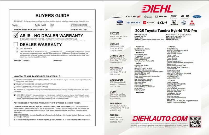 Certified. 2025 Toyota Tundra Hybrid TRD Pro TRD Pro Black CARFAX One-Owner. 20/24 City/Highway MPG