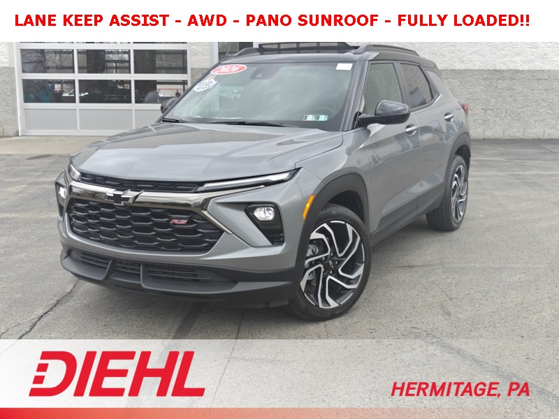 **CLEAN CARFAX**, **ALL WHEEL DRIVE**, **HEATED SEATS**, **ADAPTIVE CRUISE CONTRL**, **LANE KEEP ASSIST**, **BLIND SPOT DETECTION**, **FRONT CRASH DETECTION**, **BLUETOOTH**, **NAVIGATION**, **BACKUP CAMERA**, **PREMIUM WHEELS**, ** REMOTE START**, **PANO SUNROOF**, **POWER LIFTGATE**, **ANDROID AUTO**, **APPLE CARPLAY*, TrailBlazer RS, 1.3L I3 Turbocharged DOHC 12V LEV3-SULEV30 155hp, AWD, Sterling Gray Metallic, Jet Black With Red Accents Premium Synthetic, 1 Type-A and 1 Type-C USB Charging-Only Ports, 120-Volt Power Outlet, 4-Wheel Disc Brakes, ABS brakes, Adaptive Cruise and Sound Package, Adaptive Cruise Control, Auto High-beam Headlights, Bose Premium 7-Speaker Audio System Feature, Cabin Humidity Sensor, Convenience Package, Delay-off headlights, Driver and Front Passenger Illuminated Vanity Mirrors, Driver Confidence Package, Dual-Pane Panoramic Power Sunroof, Fully automatic headlights, Hands Free Power Programmable Liftgate, Heated Driver and Front Passenger Seats, Heated front seats, Inside Rear-View Auto-Dimming Mirror, Lane Change Alert with Side Blind Zone Alert, Low tire pressure warning, Power driver seat, Power steering, Preferred Equipment Group 1RS, Rear Cross Traffic Alert, Rear Park Assist, Single-Zone Automatic Climate Control, Telescoping steering wheel, Tilt steering wheel, Wireless Charging.