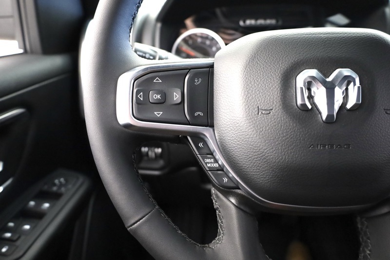 Certified. **CHRYSLER CERTIFIED**, **CLEAN CARFAX ONE OWNER**, **BED UTILITY GROUP**, **NIGHT EDITION**, **BIG HORN LEVEL 2**, **HEATED FRONT SEATS**, **HEATED STEERING WHEEL**, **POWER DRIVER SEAT**, **12" TOUCHSCREEN RADIO**, **ALPINE PREMIUM SOUND**, **APPLE CARPLAY / ANDROID AUTO**, **3.92 REAR AXLE**, **3.0L I6**, **FACTORY STRAY IN LINER**, **FACTORY REMOTE START**, **FULL SPEED FORWARD COLLISION**, **ADAPTIVE CRUISE CONTROL**, **BLIND SPOT DETECTION**, **LANE KEEP ASSIST**, **AUTO HIGH BEAMS**, **20" BLACK WHEELS**, 115V Auxiliary Power Outlet, 115V Auxiliary Rear Power Outlet, 12" Touchscreen Display, 2nd Row in Floor Storage Bins, 3 Rear Seat Head Restraints, 4 Way Front Headrests, 4-Wheel Disc Brakes, 400W Inverter, 4G LTE Wi-Fi Hot Spot, 9 Amplified Speakers with Subwoofer, ABS brakes, Accent Color Door Handles, Accent Color Premium Power Mirrors, Accent Color Tailgate Handle, Air Conditioning ATC with Dual Zone Control, Anti-Spin Differential Rear Axle, Apple CarPlay, Auto Power-Folding Mirrors, Auto-Dimming Exterior Driver Mirror, Auto-Dimming Rear-View Mirror, Bed Utility Group, Big Horn Level 2 Equipment Group, Black Exterior Mirrors, Black Exterior Truck Badging, Black Headlamp Bezels, Black Interior Accents, Black Painted Exterior Mirrors Caps, Black Premium Power Mirrors, Black Tail Lamp Bezels, Body Color Fender Flares, Body Color Front Bumper, Body Color Rear Bumper with Step Pads, Brake assist, Bucket Seats, Center Console Parts Module, Cluster 7.0" TFT Color Display, Configurable Drive Mode, Connected Travel and Traffic Services, Connectivity - US/Canada, Convex Wide-Angle Exterior Mirror Insert, Deluxe Cloth Bucket Seats, Disassociated Touchscreen Display, Dual Exhaust with Black Tips, Dual front impact airbags, Dual front side impact airbags, Electronic Stability Control, Exterior 115V AC Outlet, Exterior Mirrors Courtesy Lamps, Exterior Mirrors with Heating Element, Exterior Mirrors with Supplemental Signals, Front anti-roll bar, Front Seat Back Map Pockets, Front wheel independent suspension, Full Length Floor Console, Global Telematics Box Module, Glove Box Lamp, Google Android Auto, GPS Antenna Input, GPS Navigation, Grille Black Surround Black Mesh, HD Radio, Heated Front Seats, Heated Steering Wheel, Integrated Center Stack Radio, Integrated Voice Command with Bluetooth, Leather Wrapped Steering Wheel, LED Dome Lamp with on/Off Switch, LED Footwell Lighting, Low tire pressure warning, Manual Adjust 4-Way Front Passenger Seat, Media Hub with 2 Charge Only USBs, MOPAR 4 Adjustable Cargo Tie-Down Hooks, MOPAR Spray in Bedliner, Night Edition, Occupant sensing airbag, Overhead airbag, Overhead LED Lamps, Pick-Up Box Lighting, Power 2-Way Driver Lumbar Adjust, Power Adjust 8-Way Driver Seat, Power Adjustable Pedals, Premium Overhead Console, Quick Order Package 21Z Big Horn, Radio: Uconnect 5 Navigation with 12.0" Display, RAM Grille Badge - Black, Rear 60/40 Folding Seat, Rear anti-roll bar, Rear Center Armrest, Rear Power Sliding Window, Rear Window Defroster, Remote Tailgate Release, Security Alarm, SiriusXM Radio Service, SiriusXM with 360L, Steering Wheel Mounted Audio Controls, Sun Visors with Illuminated Vanity Mirrors, Universal Garage Door Opener, USB Host Flip, Wheels: 20" x 9.0" Aluminum Painted Clad, Wheels: 20" x 9" Aluminum Chrome Clad. CARFAX One-Owner. Clean CARFAX. Hydro Blue Pearlcoat 2026 Ram 1500 Big Horn/Lone Star 4WD 8-Speed Automatic 3.0L I6